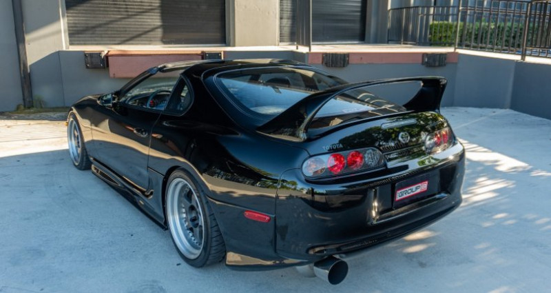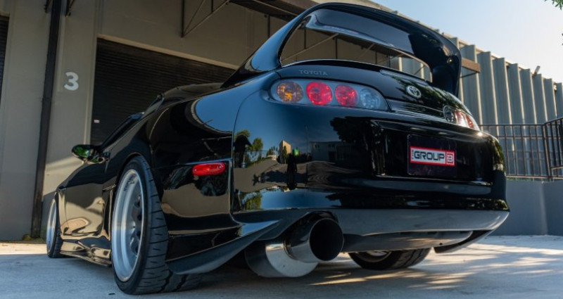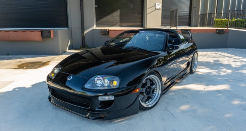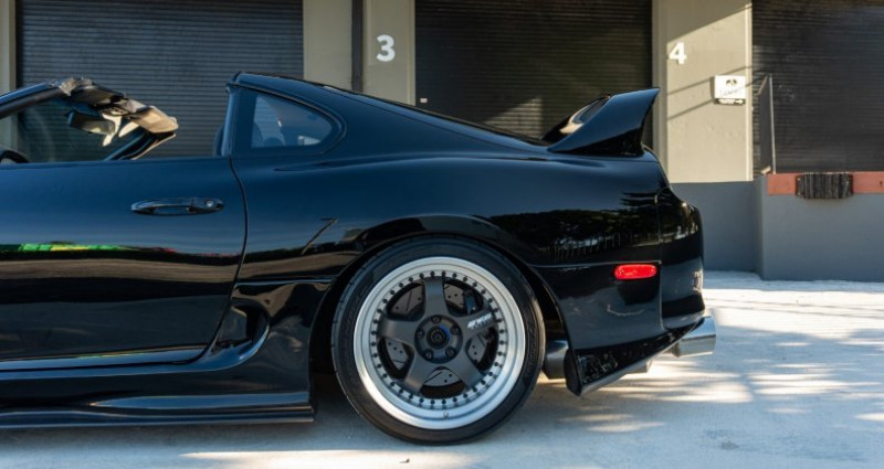 1994 Toyota Supra MK 4 Turbo, black on black, LHD, factory turbo, sport roof, lowered on H&R lowering springs, 18 inch 3 piece Work Meister wheels, Yokohama Advan Neova tires, new OEM headlights and taillights, TRD spoiler, color-matched, PPF covered front clip, upgraded powered Ganador mirrors, 3.0L 2JZ inline 6 engine, stock turbos, upgraded clutch, HKS blow off valve, cold air intake, HKS exhaust, mint condition interior, bluetooth capable Kenwood stereo, ice cold AC, worldwide shipping available, financing available, website: thegroupb.com, Instagram: @thegroupbofficial. Provenance : Florida. Disponibilité : environ 7 semaines, clés en main. 142 500 € tout compris (importation, taxes, procédure d'immatriculation). Annonce publiée le 25/11/2025