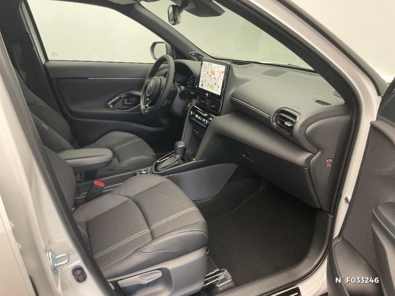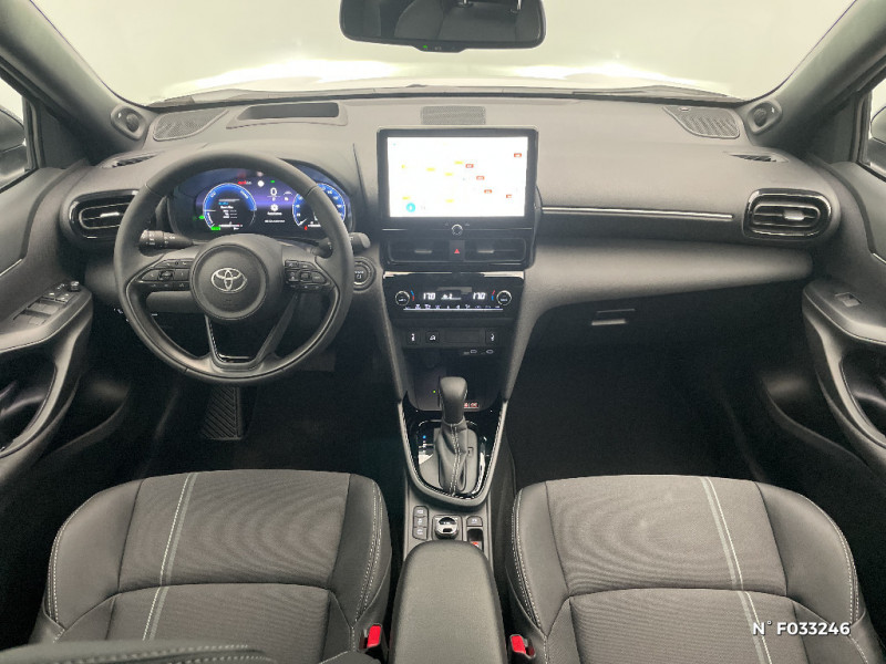 Toyota T-MATE / Systemes d'aide à la conduite et au stationnement Avertisseur de circulation AR, Avertisseur d'angles morts, Radars de stationnement AV/AR, Sortie sécurisée des occupants / Antenne de toit type requin / Attaches de coffre / Boîte automatique à variation continue / Carrosserie bi-ton / Ciel de toit gris / Clé digitale / Clignotants AR LED séquentiels / Connectivité smartphone Apple CarPlay et Android Auto sans fil / Contrôle de traction (TCS) / Eclairage d'ambiance intérieur / Ecran TFT 12.3" / Ecrous antivol / Feux Full LED (AV/AR) / Jantes alliage 18" bi-ton (5 doublesbranches) / Lampe de plafonnier AR / Poches aumonières au dos des sièges AV / Prise 12 V dans le coffre / Toyota T-MATE / Toyota Safety Sense 3 Système de sécurité précollision avec détection des véhicules, piétons et cyclistes, actif également dans les intersections. Alerte de franchissement de ligne avec aide au maintien dans la file, assistant de trajectoire et détecteur de fatigue, Lecture des panneaux de signalisation avec limiteur de vitesse, Gestion automatique des feux de route, Régulateur de vitesse adaptatif intelligent, Système d'arrêt d'urgence autonome , Système d'assistance à la conduite proactive / 6 HP / Purificateur d'air ionique Nanoe / Rails de toit noir / Réglage lombaire électrique pour le siège conducteur / Rétroviseur intérieur électrochromatique / Sellerie tissu noir et revêtement Premium / Services connectés de contrôle à distance MyToyota (inclus 4 ans) / Services connectés standards MyToyota (inclus 10 ans) / Seuils de portes en aluminium / Sièges AR rabattables 40:20:40 / Système d'appel d'urgence automatique "E-Call" / Système d'ouverture/fermeture et démarrage sans clé "Smart Entry & Start" / Système multimédia Toyota Smart Connect avec écran tactile 10,5" haute définition, Bluetooth, Radio FM et DAB (digitale), système de connectivité smartphone Apple CarPlay et Android Auto (sans fil), Services intelligents avec Navigation connectée avec infotrafic en temps réel, mises à jour cartographiques, assistant vocal "Hey Toyota" et recherche de points d'intérêts (inclus 4 ans)