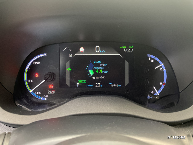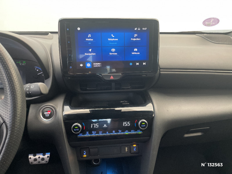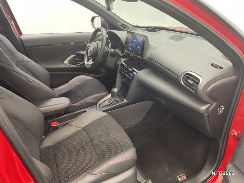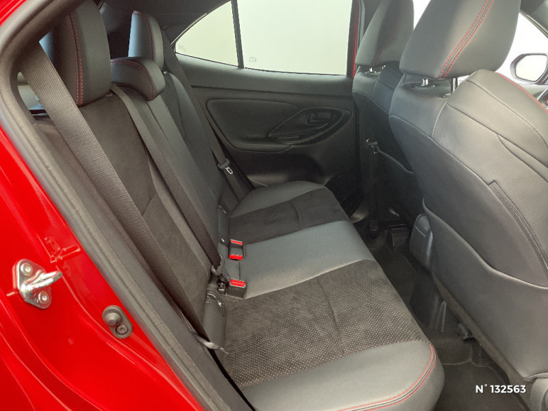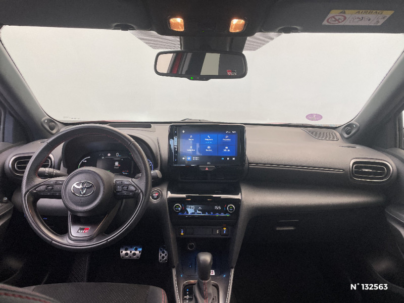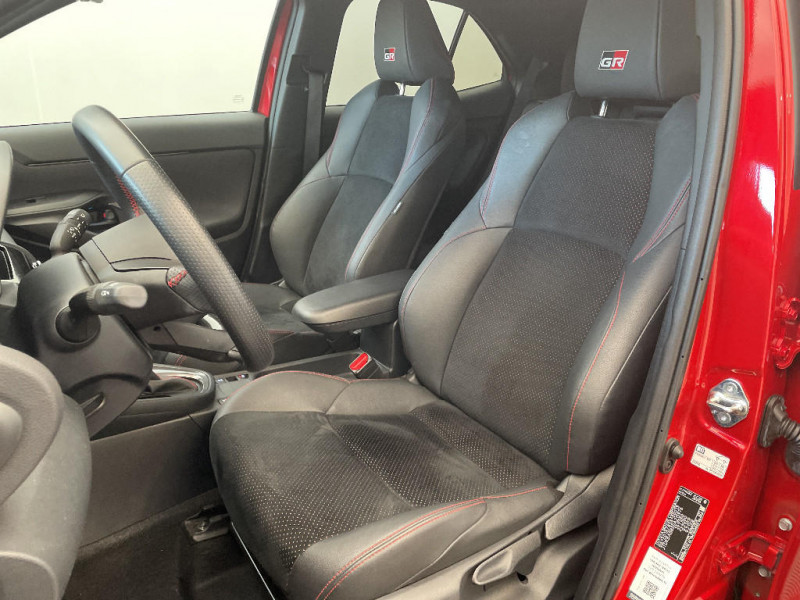 Volant cuir avec surpiqûres rouges et logo / 6 HP / Antenne de toit type requin / Attaches de coffre / Avertisseur de circulation AR (RCTA) / Badge "GR SPORT" / Badges AV/AR / Carrosserie bi-ton / Centre de gravité rabaissé et suspensions raffermie / Clignotants LED séquentiels / Diffuseur AR / Double plancher du coffre modulable / Eclairage d'ambiance intérieur / Ecran couleur tactile multifonction 8" / Ecran TFT 7" / Ecran TFT 7" avec logo / Ecrous antivol / Feux AV/AR avec signature lumineuse Full LED / Feux de route adaptatifs / Feux de route automatiques / Feux Full LED (AV/AR) / Garde au sol abaissée de 10 mm / Grille de calandre AV en nid d'abeille / Grille de calandre et de parechocs AV en nid d'abeille / Grille de parechoc en nid d'abeille / Jantes alliage 18" (5 doubles-branches) / Logo (volant et bouton Start ) / Pédalier en aluminium / Poches aumonières au dos des sièges AV / Purificateur d'air ionique Nanoe / Réglage lombaire du siège conducteur / Réglage lombaire électrique pour le siège conducteur / Rétroviseur intérieur électrochromatique / Sellerie Ultrasuede / Sellerie Ultrasuede noir perforé rouge avec renforts latéraux en similicuir, surpiqûres rouges et logo / Seuils de portes en aluminium siglés GR SPORT / Sièges AR rabattables 40:20:40 / Suspension raffermies / Système d'appel d'urgence automatique "E-Call" / Système d'ouverture/fermeture et démarrage sans clé "Smart Entry & Start" / Toyota Safety Sense / Toyota Safety Sense Système de sécurité précollision avec détection des véhicules, piétons et cyclistes, actif également dans les intersections. Alerte de franchissement de ligne avec aide au maintien dans la file, assistant de trajectoire et détecteur de fatigue, Lecture des panneaux de signalisation avec limiteur de vitesse, Gestion automatique des feux de route, Régulateur de vitesse adaptatif intelligent