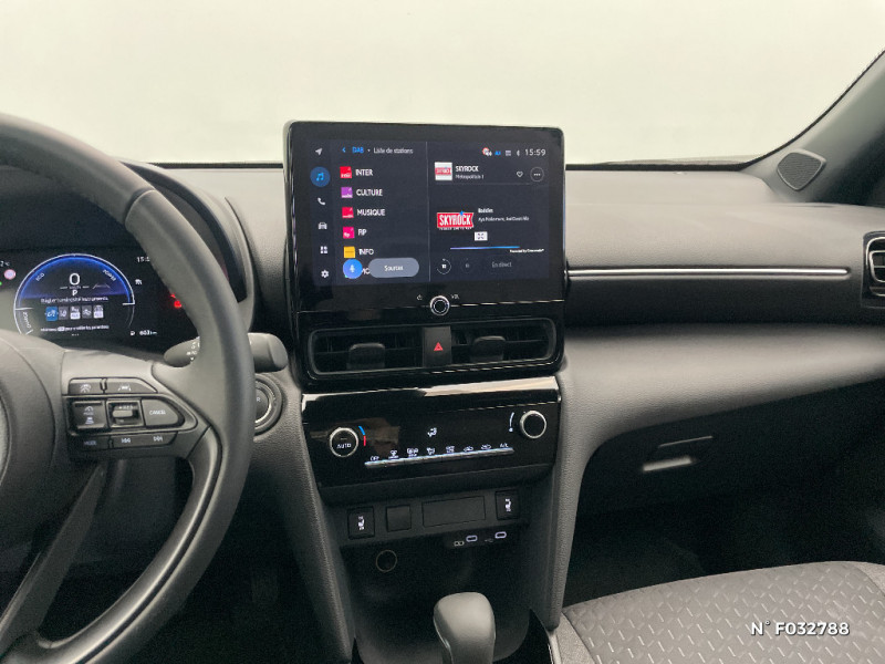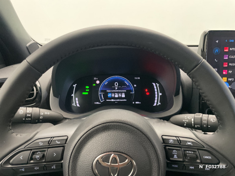 Boîte automatique à variation continue / Ciel de toit noir / Clignotants AR LED séquentiels / Connectivité smartphone Apple CarPlay et Android Auto sans fil / Contrôle de traction (TCS) / Ecran TFT 7" / Ecrous antivol / Feux Full LED (AV/AR) / Jantes alliage 17" (5 doubles-branches) / Lampe de plafonnier AR / Rails de toit noir / Rétroviseur intérieur électrochromatique / Sellerie tissu gris / Services connectés de contrôle à distance MyToyota (inclus 4 ans) / Services connectés standards MyToyota (inclus 10 ans) / Seuils de portes en aluminium / Système d'appel d'urgence automatique "E-Call" / Système d'ouverture/fermeture et démarrage sans clé "Smart Entry & Start" / Système multimédia Toyota Smart Connect avec écran tactile 10,5" haute définition, Bluetooth, Radio FM et DAB (digitale), système de connectivité smartphone Apple CarPlay et Android Auto (sans fil), Services intelligents avec Navigation connectée avec infotrafic en temps réel, mises à jour cartographiques, assistant vocal "Hey Toyota" et recherche de points d'intérêts (inclus 4 ans) / Toyota T-MATE / Toyota Safety Sense 3 Système de sécurité précollision avec détection des véhicules, piétons et cyclistes, actif également dans les intersections. Alerte de franchissement de ligne avec aide au maintien dans la file, assistant de trajectoire et détecteur de fatigue, Lecture des panneaux de signalisation avec limiteur de vitesse, Gestion automatique des feux de route, Régulateur de vitesse adaptatif intelligent, Système d'arrêt d'urgence autonome , Système d'assistance à la conduite proactive / 6 HP / Antenne de toit type requin / Carrosserie monoton