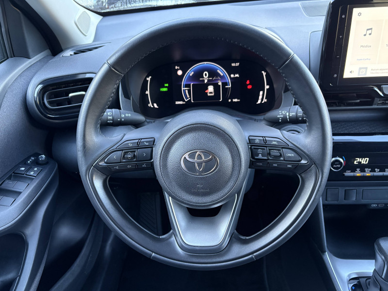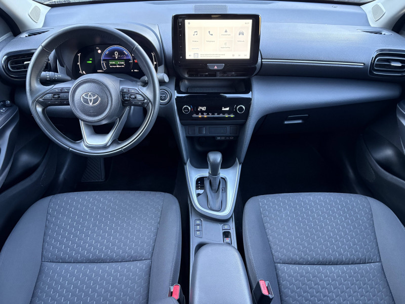 6 HP / Antenne de toit type requin / Carrosserie monoton / Ciel de toit gris / Connectivité smartphone Apple CarPlay et Android Auto sans fil / Double plancher du coffre / Ecran TFT 7" / Enjoliveurs 16" / Feux AV halogènes / Lampe de plafonnier AR / Sellerie tissu gris foncé / Services connectés standards MyToyota (inclus 10 ans) / Système audio Toyota Touch 3 écran tactile 9", radio digitale (DAB), Bluetooth / Système d'appel d'urgence automatique "E-Call" / Système d'ouverture/fermeture et démarrage sans clé "Smart Entry & Start" / Toyota T-MATE / Toyota Safety Sense 3 Système de sécurité précollision avec détection des véhicules, piétons et cyclistes, actif également dans les intersections. Alerte de franchissement de ligne avec aide au maintien dans la file, assistant de trajectoire et détecteur de fatigue, Lecture des panneaux de signalisation avec limiteur de vitesse, Gestion automatique des feux de route, Régulateur de vitesse adaptatif intelligent, Système d'arrêt d'urgence autonome , Système d'assistance à la conduite proactive