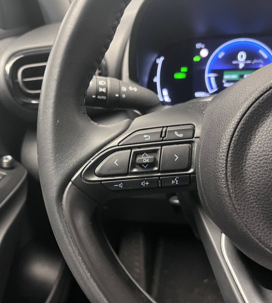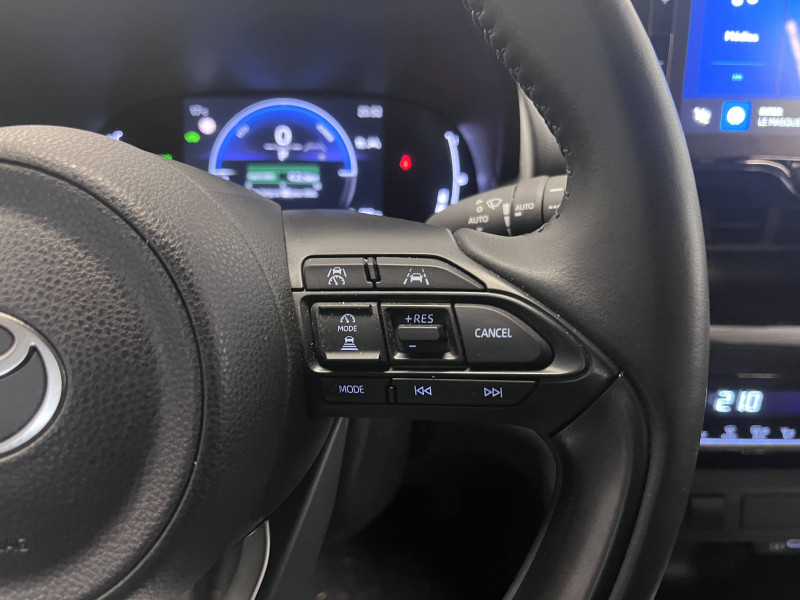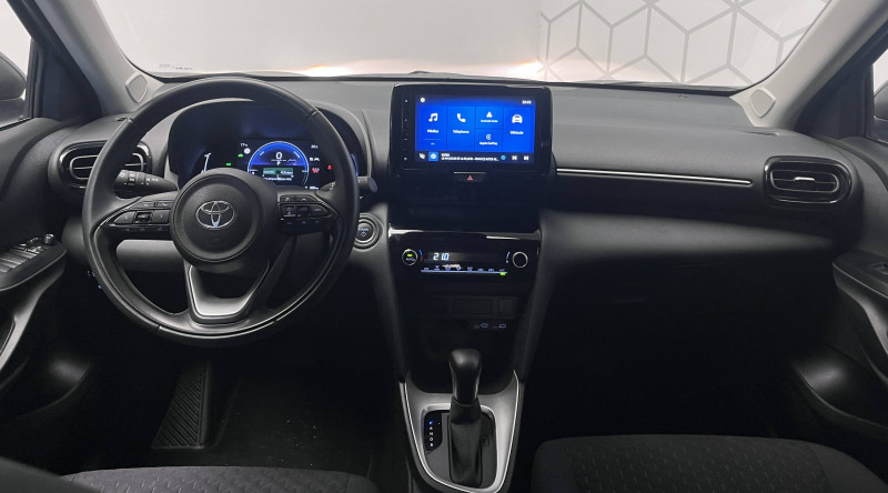 6 HP / Antenne de toit type requin / Carrosserie monoton / Ciel de toit gris / Connectivité smartphone Apple CarPlay et Android Auto sans fil / Double plancher du coffre / Ecran TFT 7" / Enjoliveurs 16" / Feux AV halogènes / Lampe de plafonnier AR / Sellerie tissu gris foncé / Services connectés standards MyToyota (inclus 10 ans) / Système audio Toyota Touch 3 écran tactile 9", radio digitale (DAB), Bluetooth / Système d'appel d'urgence automatique "E-Call" / Système d'ouverture/fermeture et démarrage sans clé "Smart Entry & Start" / Toyota T-MATE / Toyota Safety Sense 3 Système de sécurité précollision avec détection des véhicules, piétons et cyclistes, actif également dans les intersections. Alerte de franchissement de ligne avec aide au maintien dans la file, assistant de trajectoire et détecteur de fatigue, Lecture des panneaux de signalisation avec limiteur de vitesse, Gestion automatique des feux de route, Régulateur de vitesse adaptatif intelligent, Système d'arrêt d'urgence autonome , Système d'assistance à la conduite proactive