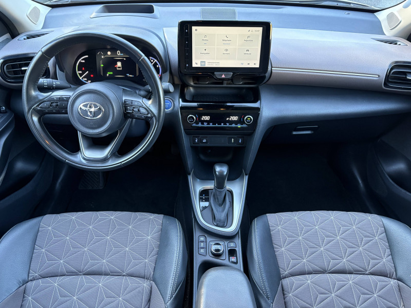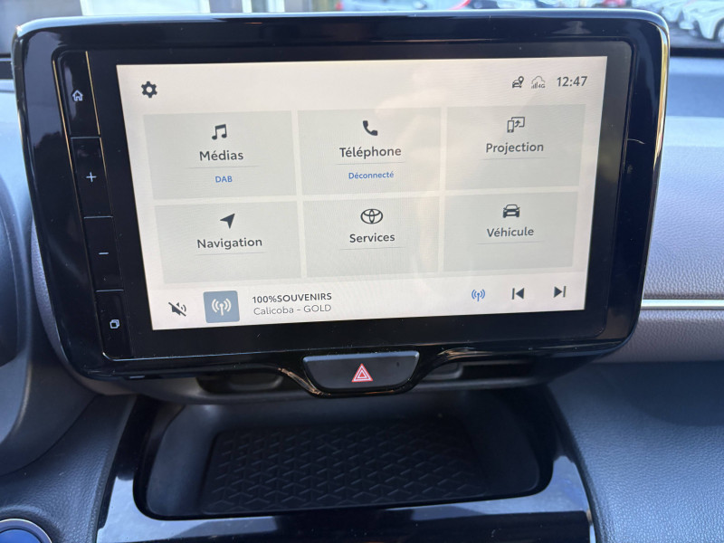 6 HP / Antenne de toit type requin / Attaches de coffre / Avertisseur de circulation AR (RCTA) / Clignotants LED séquentiels / Eclairage d'ambiance intérieur / Ecran TFT 7" / Feux AV/AR avec signature lumineuse Full LED / Feux de route adaptatifs / Feux de route automatiques / Jantes alliage 18'' métal (10 doubles-branches) / Réglage lombaire du siège conducteur / Rétroviseur intérieur électrochromatique / Sièges AR rabattables 40:20:40 / Système multimédia Toyota Smart Connect : écran tactile 9", navigation connectée et contrôle à distance via l'application MyT (verrouiller/déverrouiller, climatisation et retrouver ma voiture avec allumage des feux clignotants) / Toyota Safety Sense Système de sécurité précollision avec détection des véhicules, piétons et cyclistes, actif également dans les intersections. Alerte de franchissement de ligne avec aide au maintien dans la file, assistant de trajectoire et détecteur de fatigue, Lecture des panneaux de signalisation avec limiteur de vitesse, Gestion automatique des feux de route, Régulateur de vitesse adaptatif intelligent