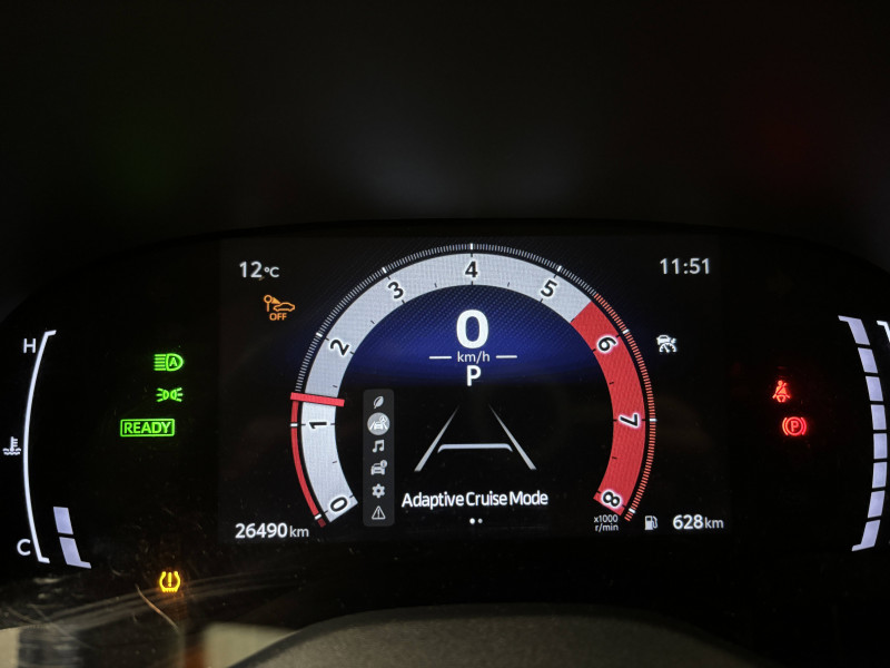 6 HP / Antenne de toit type requin / Carrosserie monoton / Ciel de toit noir / Clignotants AR LED séquentiels / Connectivité smartphone Apple CarPlay et Android Auto sans fil / Ecran TFT 7" / Ecrous antivol / Feux Full LED (AV/AR) / Jantes alliage 17" (5 doubles-branches) / Lampe de plafonnier AR / Rails de toit noir / Rétroviseur intérieur électrochromatique / Sellerie tissu gris / Services connectés de contrôle à distance MyToyota (inclus 4 ans) / Services connectés standards MyToyota (inclus 10 ans) / Seuils de portes en aluminium / Système d'appel d'urgence automatique "E-Call" / Système d'ouverture/fermeture et démarrage sans clé "Smart Entry & Start" / Système multimédia Toyota Smart Connect avec écran tactile 10,5" haute définition, Bluetooth, Radio FM et DAB (digitale), système de connectivité smartphone Apple CarPlay et Android Auto (sans fil), Services intelligents avec Navigation connectée avec infotrafic en temps réel, mises à jour cartographiques, assistant vocal "Hey Toyota" et recherche de points d'intérêts (inclus 4 ans) / Toyota T-MATE / Toyota Safety Sense 3 Système de sécurité précollision avec détection des véhicules, piétons et cyclistes, actif également dans les intersections. Alerte de franchissement de ligne avec aide au maintien dans la file, assistant de trajectoire et détecteur de fatigue, Lecture des panneaux de signalisation avec limiteur de vitesse, Gestion automatique des feux de route, Régulateur de vitesse adaptatif intelligent, Système d'arrêt d'urgence autonome , Système d'assistance à la conduite proactive