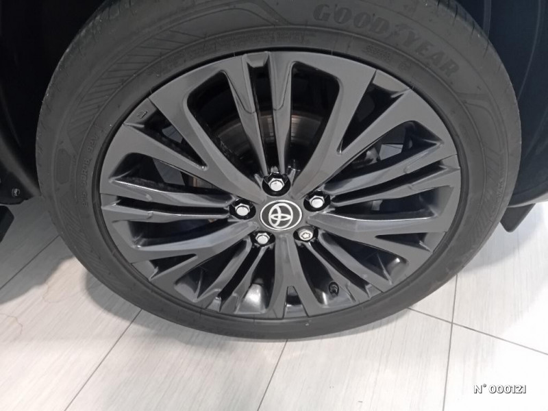 Ecran couleur tactile multifonction 9" / Ecrous antivol / Feux AV/AR avec signature lumineuse Full LED / Feux de route adaptatifs / Feux de route automatiques / Feux Full LED (AV/AR) / Jantes alliage 18'' noires (10 doubles-branches) / Poches aumonières au dos des sièges AV / Purificateur d'air ionique Nanoe / Rails de toit / Rails de toit noir / Réglage lombaire du siège conducteur / Réglage lombaire électrique pour le siège conducteur / Rétroviseur intérieur électrochromatique / Seuils de portes en aluminium / Sièges AR rabattables 40:20:40 / Système d'appel d'urgence automatique "E-Call" / Système d'ouverture/fermeture et démarrage sans clé "Smart Entry & Start" / Système multimédia Toyota Smart Connect : écran tactile 9", navigation connectée et contrôle à distance via l'application MyT (verrouiller/déverrouiller, climatisation et retrouver ma voiture avec allumage des feux clignotants) / Système multimédia Toyota Smart Connect : écran tactile 9", navigation connectée et contrôle à distance via l'application MyT (verrouiller/déverrouiller, relancer la climatisation et retrouver ma voiture avec allumage des feux clignotants) et 4 ans de mises à jour cartographiques et de services connectés inclus / Toyota Safety Sense / Toyota Safety Sense Système de sécurité précollision avec détection des véhicules, piétons et cyclistes, actif également dans les intersections. Alerte de franchissement de ligne avec aide au maintien dans la file, assistant de trajectoire et détecteur de fatigue, Lecture des panneaux de signalisation avec limiteur de vitesse, Gestion automatique des feux de route, Régulateur de vitesse adaptatif intelligent / Toyota Smart Connect / 6 HP / Antenne de toit type requin / Attaches de coffre / Avertisseur de circulation AR (RCTA) / Boucliers AV/AR gris / Boucliers avec renfort AV/AR / Clignotants LED séquentiels / Eclairage d'ambiance intérieur / Ecran TFT 7"