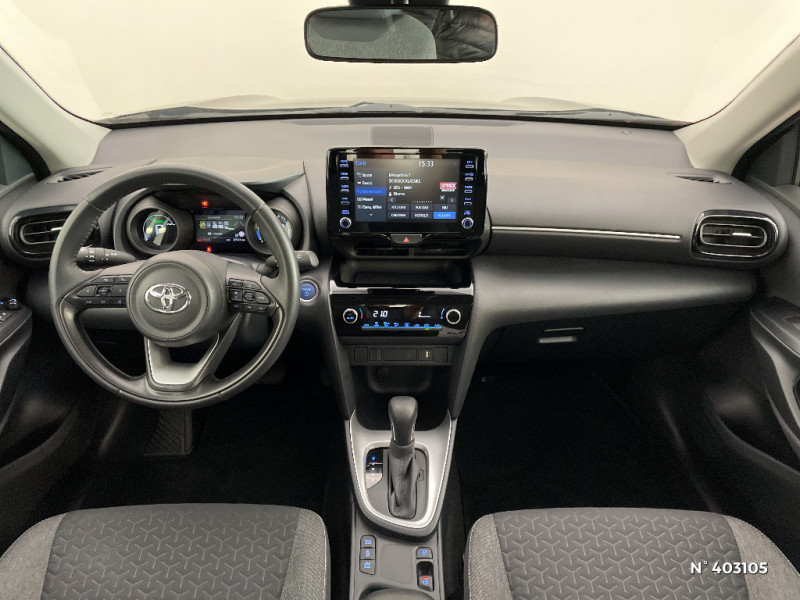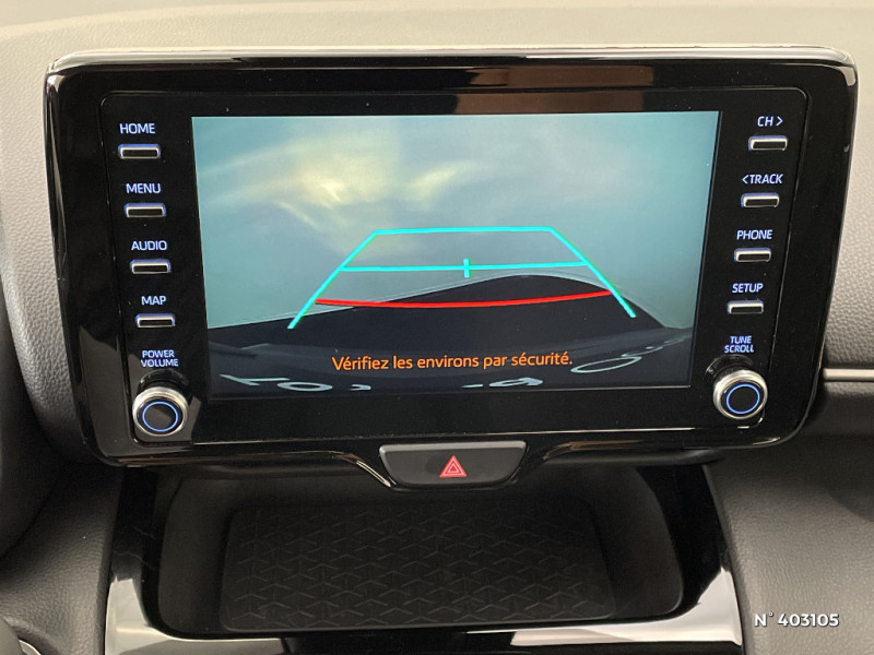 6 HP / Ecran TFT 7" / Enjoliveurs 16" / Feux AV halogènes / Lampe de plafonnier AR / Rétroviseur intérieur électrochromatique / Sellerie tissu gris foncé / Services connectés standards MyToyota (inclus 10 ans) / Système audio Toyota Touch 3 écran tactile 9", radio digitale (DAB), Bluetooth / Système d'appel d'urgence automatique "E-Call" / Système d'ouverture/fermeture et démarrage sans clé "Smart Entry & Start" / Antenne de toit type requin / Boîte automatique à variation continue / Carrosserie monoton / Ciel de toit gris / Connectivité smartphone Apple CarPlay et Android Auto sans fil / Contrôle de traction (TCS) / Toyota T-MATE / Toyota Safety Sense 3 Système de sécurité précollision avec détection des véhicules, piétons et cyclistes, actif également dans les intersections. Alerte de franchissement de ligne avec aide au maintien dans la file, assistant de trajectoire et détecteur de fatigue, Lecture des panneaux de signalisation avec limiteur de vitesse, Gestion automatique des feux de route, Régulateur de vitesse adaptatif intelligent, Système d'arrêt d'urgence autonome , Système d'assistance à la conduite proactive / Double plancher du coffre