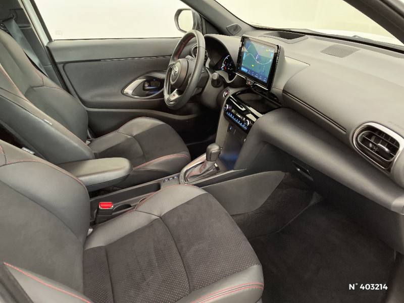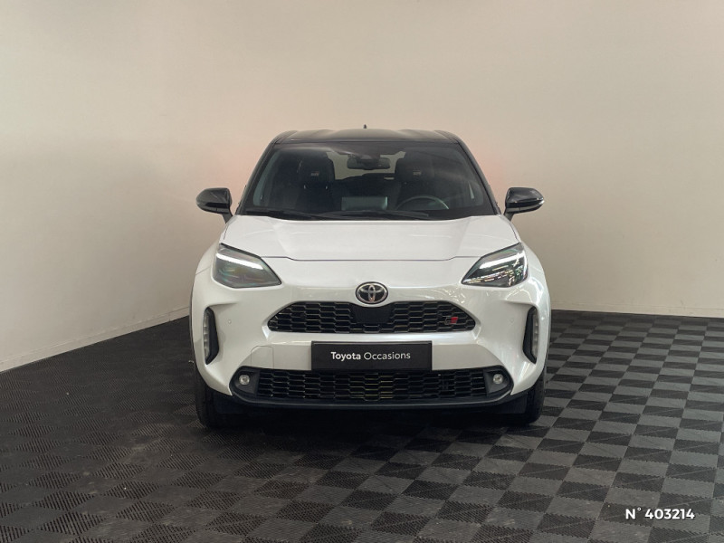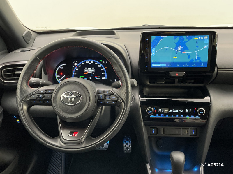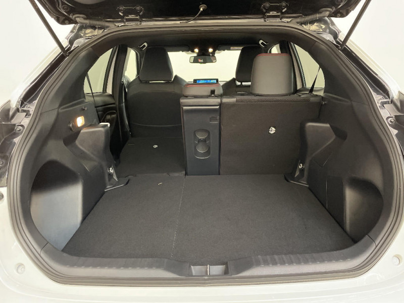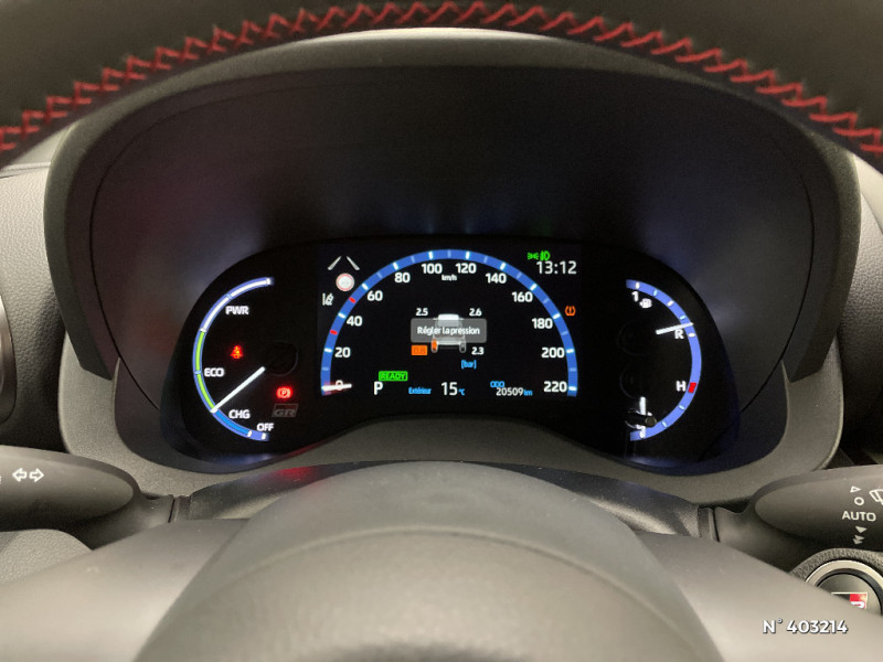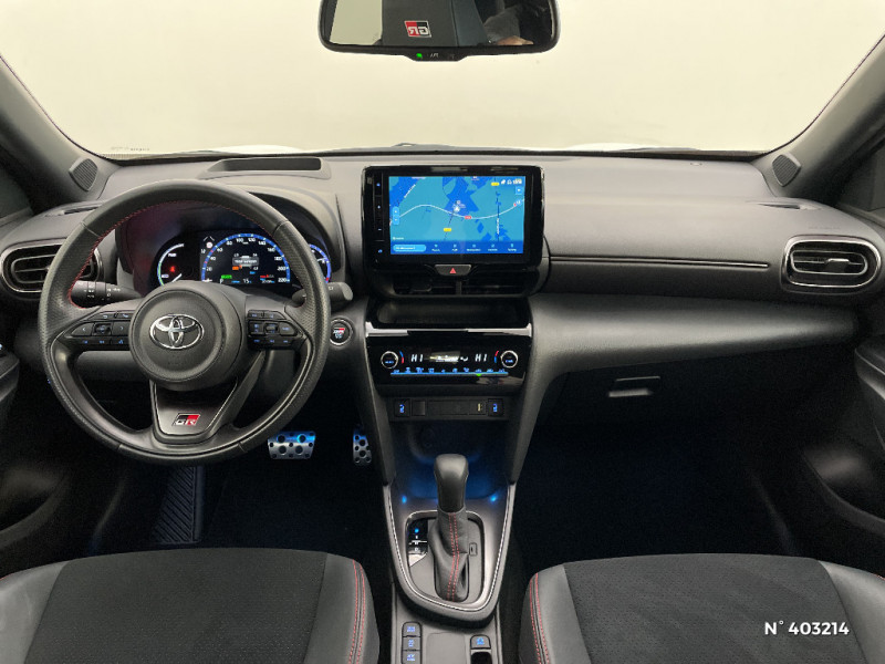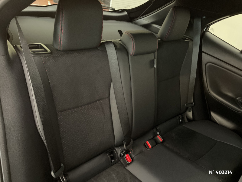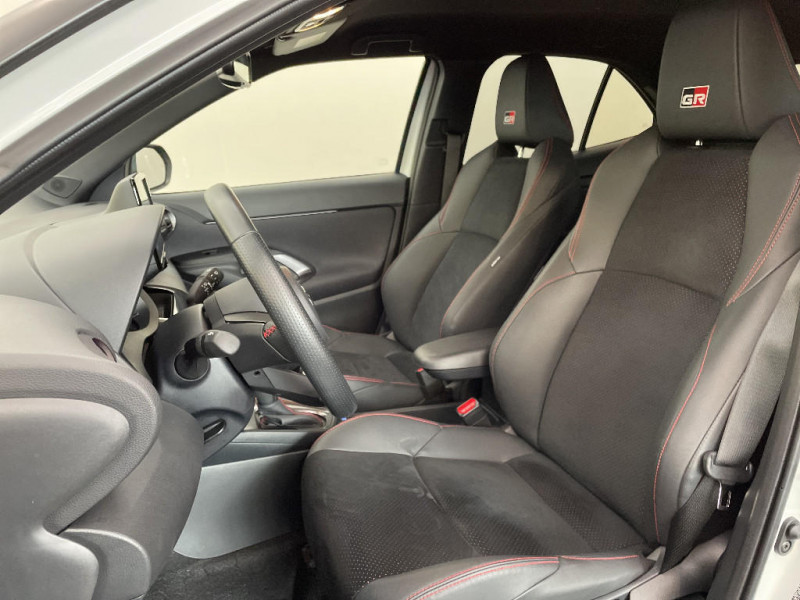 Sellerie Ultrasuede noir perforé rouge avec renforts latéraux en similicuir, surpiqûres rouges et logo / Seuils de portes en aluminium siglés GR SPORT / Ecran TFT 7" / Ecran TFT 7" avec logo / Ecrous antivol / Feux AV/AR avec signature lumineuse Full LED / Feux de route adaptatifs / Feux de route automatiques / Feux Full LED (AV/AR) / Grille de calandre et de parechocs AV en nid d'abeille / Grille de parechoc en nid d'abeille / Sièges AR rabattables 40:20:40 / Suspension raffermies / Système d'appel d'urgence automatique "E-Call" / Système d'ouverture/fermeture et démarrage sans clé "Smart Entry & Start" / Toyota Safety Sense / Toyota Safety Sense Système de sécurité précollision avec détection des véhicules, piétons et cyclistes, actif également dans les intersections. Alerte de franchissement de ligne avec aide au maintien dans la file, assistant de trajectoire et détecteur de fatigue, Lecture des panneaux de signalisation avec limiteur de vitesse, Gestion automatique des feux de route, Régulateur de vitesse adaptatif intelligent / Volant cuir avec surpiqûres rouges et logo / 6 HP / Garde au sol abaissée de 10 mm / Grille de calandre AV en nid d'abeille / Antenne de toit type requin / Attaches de coffre / Avertisseur de circulation AR (RCTA) / Badge "GR SPORT" / Badges AV/AR / Carrosserie bi-ton / Centre de gravité rabaissé et suspensions raffermie / Clignotants LED séquentiels / Diffuseur AR / Double plancher du coffre modulable / Eclairage d'ambiance intérieur / Ecran couleur tactile multifonction 8" / Jantes alliage 18" (5 doubles-branches) / Logo (volant et bouton Start ) / Pédalier en aluminium / Poches aumonières au dos des sièges AV / Purificateur d'air ionique Nanoe / Réglage lombaire du siège conducteur / Réglage lombaire électrique pour le siège conducteur / Rétroviseur intérieur électrochromatique / Sellerie Ultrasuede
