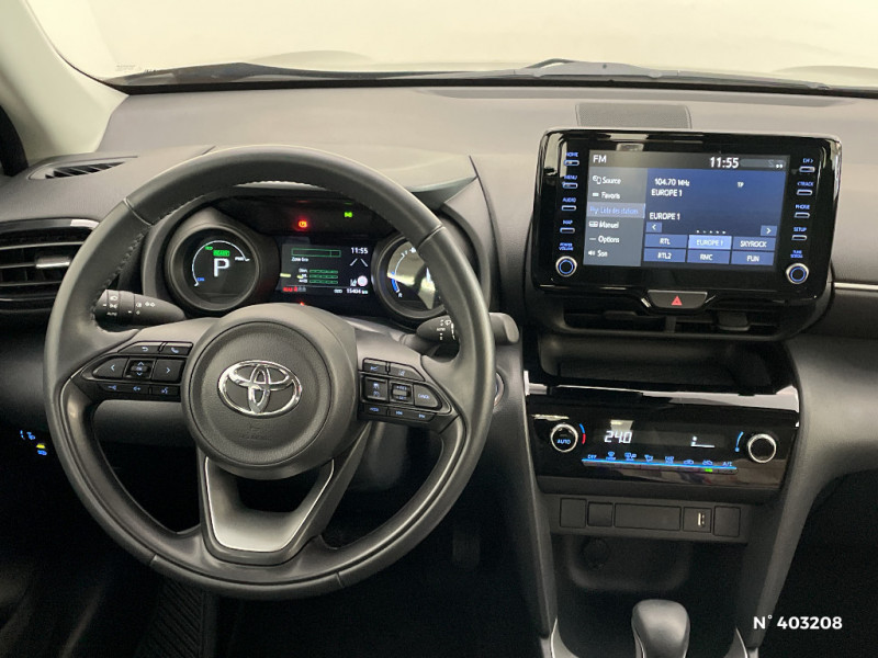 Peinture Blanc Pur / Sellerie tissu gris / Système d'appel d'urgence automatique "E-Call" / Système d'ouverture/fermeture et démarrage sans clé "Smart Entry & Start" / Toyota Safety Sense Système de sécurité précollision avec détection des véhicules, piétons et cyclistes, actif également dans les intersections. Alerte de franchissement de ligne avec aide au maintien dans la file, assistant de trajectoire et détecteur de fatigue, Lecture des panneaux de signalisation avec limiteur de vitesse, Gestion automatique des feux de route, Régulateur de vitesse adaptatif intelligent / Toyota Smart Connect / Feux de route automatiques / Feux AV halogènes / Enjoliveurs 16" / Ecran TFT 4,2" / 4 HP / Ecran couleur tactile multifonction 8" / Double plancher du coffre / Antenne de toit type requin