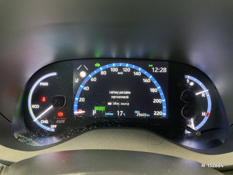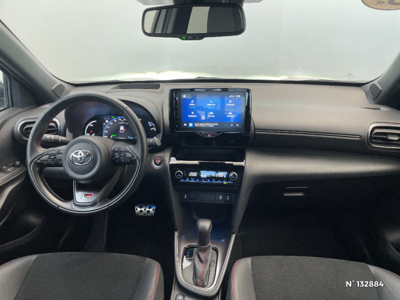Rétroviseur intérieur électrochromatique / Sellerie Ultrasuede / Sellerie Ultrasuede noir perforé rouge avec renforts latéraux en similicuir, surpiqûres rouges et logo / Seuils de portes en aluminium siglés GR SPORT / Sièges AR rabattables 40:20:40 / Suspension raffermies / Système d'appel d'urgence automatique "E-Call" / Système d'ouverture/fermeture et démarrage sans clé "Smart Entry & Start" / Toyota Safety Sense / Toyota Safety Sense Système de sécurité précollision avec détection des véhicules, piétons et cyclistes, actif également dans les intersections. Alerte de franchissement de ligne avec aide au maintien dans la file, assistant de trajectoire et détecteur de fatigue, Lecture des panneaux de signalisation avec limiteur de vitesse, Gestion automatique des feux de route, Régulateur de vitesse adaptatif intelligent / Antenne de toit type requin / Attaches de coffre / Avertisseur de circulation AR (RCTA) / Badge "GR SPORT" / Badges AV/AR / Carrosserie bi-ton / Centre de gravité rabaissé et suspensions raffermie / Clignotants LED séquentiels / Volant cuir avec surpiqûres rouges et logo / 6 HP / Diffuseur AR / Double plancher du coffre modulable / Eclairage d'ambiance intérieur / Ecran couleur tactile multifonction 8" / Ecran TFT 7" / Ecran TFT 7" avec logo / Ecrous antivol / Feux AV/AR avec signature lumineuse Full LED / Feux de route adaptatifs / Feux de route automatiques / Feux Full LED (AV/AR) / Garde au sol abaissée de 10 mm / Grille de calandre AV en nid d'abeille / Grille de calandre et de parechocs AV en nid d'abeille / Grille de parechoc en nid d'abeille / Jantes alliage 18" (5 doubles-branches) / Logo (volant et bouton Start ) / Pédalier en aluminium / Poches aumonières au dos des sièges AV / Purificateur d'air ionique Nanoe / Réglage lombaire du siège conducteur / Réglage lombaire électrique pour le siège conducteur