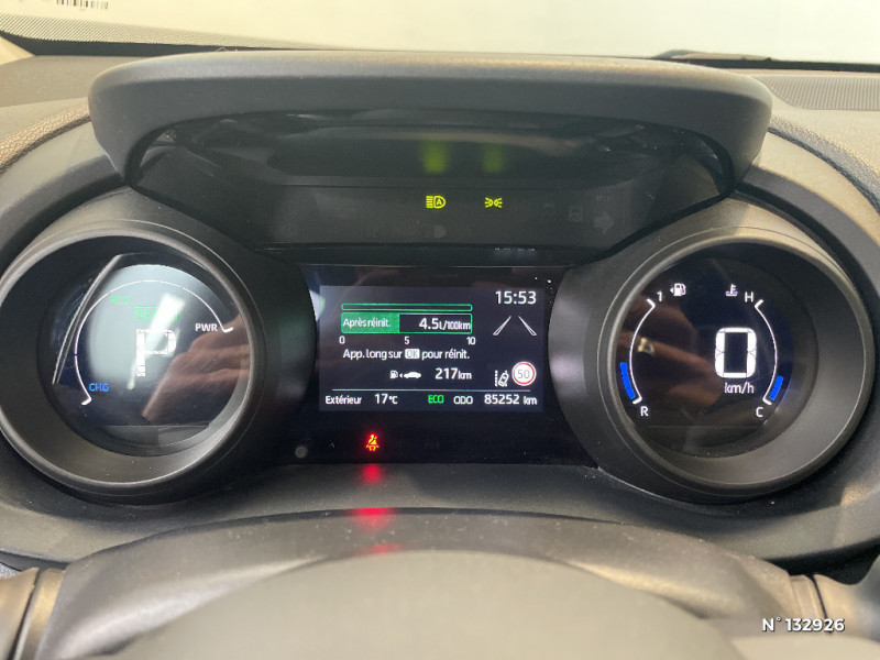 4 HP / Peinture Blanc Pur / Programme "Beyond Zero Academy" / Sellerie tissu gris / Stage Hybride Académie / Système d'appel d'urgence automatique "E-Call" / Système d'ouverture/fermeture et démarrage sans clé "Smart Entry & Start" / Toyota Safety Sense / Toyota Safety Sense Système de sécurité précollision avec détection des véhicules, piétons et cyclistes, actif également dans les intersections. Alerte de franchissement de ligne avec aide au maintien dans la file, assistant de trajectoire et détecteur de fatigue, Lecture des panneaux de signalisation avec limiteur de vitesse, Gestion automatique des feux de route, Régulateur de vitesse adaptatif intelligent / Toyota Touch & Go : système de navigation 3D à écran couleur tactile avec reconnaissance vocale et 3 ans de mises à jour cartographiques et de services connectés inclus / Antenne de toit type requin / Connectivité smartphone Apple CarPlay et Android Auto / Double plancher du coffre / Ecran couleur tactile multifonction 8" / Ecran TFT 4,2" / Feux AV halogènes