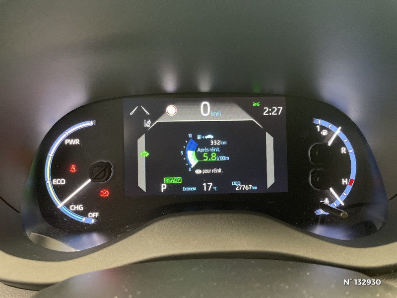 Jantes alliage 18'' métal (10 doubles-branches) / Poches aumonières au dos des sièges AV / Purificateur d'air ionique Nanoe / Antenne de toit type requin / Attaches de coffre / Avertisseur de circulation AR (RCTA) / Carrosserie bi-ton / Clignotants LED séquentiels / Double plancher du coffre modulable / Eclairage d'ambiance intérieur / Ecran couleur tactile multifonction 9" / Ecran TFT 7" / Ecrous antivol / Feux AV/AR avec signature lumineuse Full LED / Feux de route adaptatifs / Réglage lombaire du siège conducteur / Réglage lombaire électrique pour le siège conducteur / Rétroviseur intérieur électrochromatique / Seuils de portes en aluminium / Sièges AR rabattables 40:20:40 / Système d'appel d'urgence automatique "E-Call" / Système d'ouverture/fermeture et démarrage sans clé "Smart Entry & Start" / Système multimédia Toyota Smart Connect : écran tactile 9", navigation connectée et contrôle à distance via l'application MyT (verrouiller/déverrouiller, climatisation et retrouver ma voiture avec allumage des feux clignotants) / Système multimédia Toyota Smart Connect : écran tactile 9", navigation connectée et contrôle à distance via l'application MyT (verrouiller/déverrouiller, relancer la climatisation et retrouver ma voiture avec allumage des feux clignotants) et 4 ans de mises à jour cartographiques et de services connectés inclus / Toyota Safety Sense / Toyota Safety Sense Système de sécurité précollision avec détection des véhicules, piétons et cyclistes, actif également dans les intersections. Alerte de franchissement de ligne avec aide au maintien dans la file, assistant de trajectoire et détecteur de fatigue, Lecture des panneaux de signalisation avec limiteur de vitesse, Gestion automatique des feux de route, Régulateur de vitesse adaptatif intelligent / 6 HP / Feux de route automatiques / Feux Full LED (AV/AR)