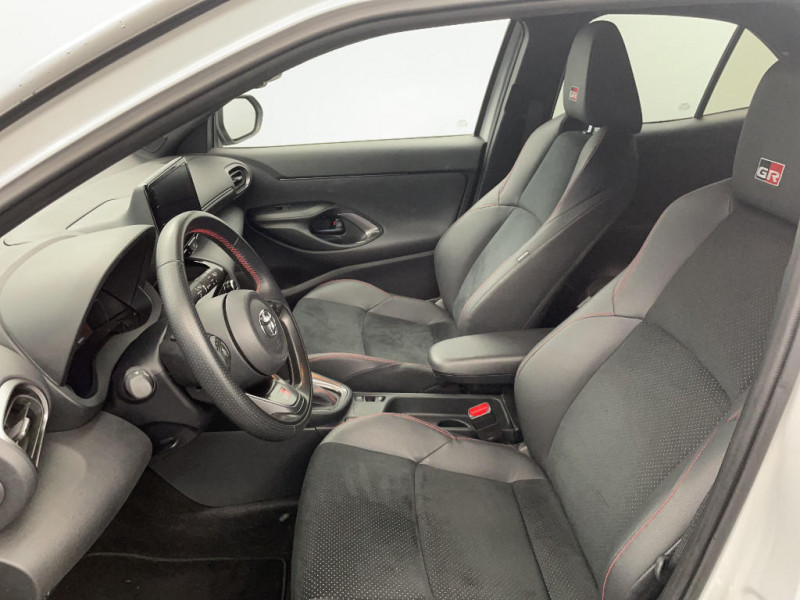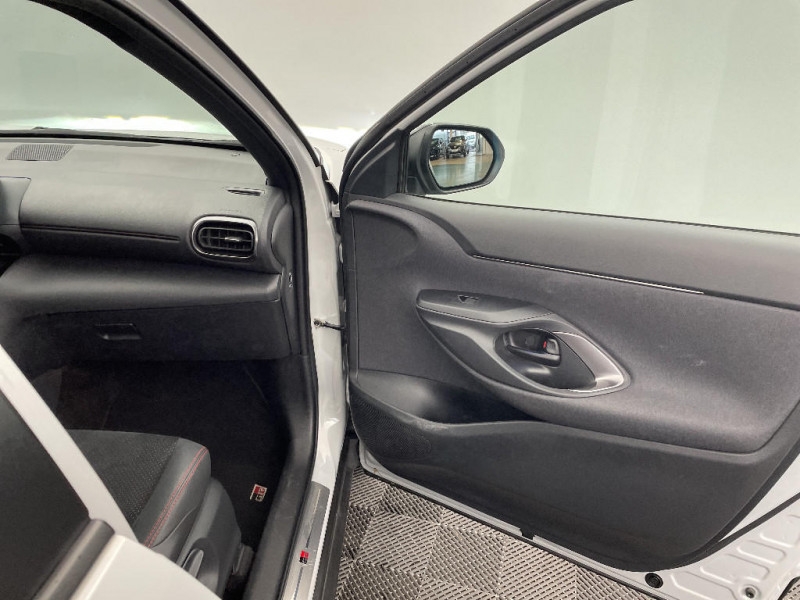 Système d'ouverture/fermeture et démarrage sans clé "Smart Entry & Start" / Toyota Safety Sense Système de sécurité précollision avec détection des véhicules, piétons et cyclistes, actif également dans les intersections. Alerte de franchissement de ligne avec aide au maintien dans la file, assistant de trajectoire et détecteur de fatigue, Lecture des panneaux de signalisation avec limiteur de vitesse, Gestion automatique des feux de route, Régulateur de vitesse adaptatif intelligent / Volant cuir avec surpiqûres rouges et logo / 6 HP / Sellerie Ultrasuede noir perforé rouge avec renforts latéraux en similicuir, surpiqûres rouges et logo / Pédalier en aluminium / Grille de parechoc en nid d'abeille / Grille de calandre AV en nid d'abeille / Feux AV/AR avec signature lumineuse Full LED / Ecran TFT 7" / Diffuseur AR / Avertisseur de circulation AR (RCTA) / Antenne de toit type requin