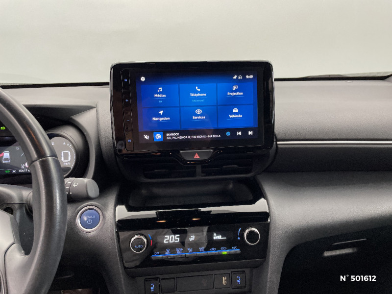 Double plancher du coffre / Ecran couleur tactile multifonction 9" / Feux Full LED (AV/AR) / Sellerie tissu gris / Système d'ouverture/fermeture et démarrage sans clé "Smart Entry & Start" / Système multimédia Toyota Smart Connect : écran tactile 9", navigation connectée et contrôle à distance via l'application MyT (verrouiller/déverrouiller, climatisation et retrouver ma voiture avec allumage des feux clignotants) / Toyota Safety Sense Système de sécurité précollision avec détection des véhicules, piétons et cyclistes, actif également dans les intersections. Alerte de franchissement de ligne avec aide au maintien dans la file, assistant de trajectoire et détecteur de fatigue, Lecture des panneaux de signalisation avec limiteur de vitesse, Gestion automatique des feux de route, Régulateur de vitesse adaptatif intelligent / 6 HP / Feux de route automatiques / Antenne de toit type requin