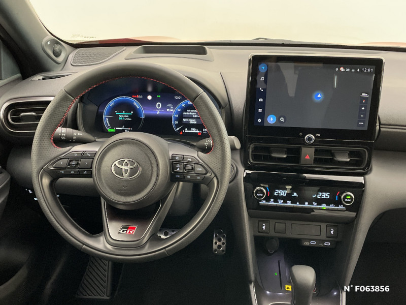 Sellerie en suédine noire perforée rouge et revêtement Premium / Services connectés de contrôle à distance MyToyota (inclus 4 ans) / Services connectés standards MyToyota (inclus 10 ans) / Seuils de portes en aluminium siglés GR SPORT / Sièges AR rabattables 40:20:40 / Système d'appel d'urgence automatique "E-Call" / Système d'ouverture/fermeture et démarrage sans clé "Smart Entry & Start" / Système multimédia Toyota Smart Connect avec écran tactile 10,5" haute définition, Bluetooth, Radio FM et DAB (digitale), système de connectivité smartphone Apple CarPlay et Android Auto (sans fil), Services intelligents avec Navigation connectée avec infotrafic en temps réel, mises à jour cartographiques, assistant vocal "Hey Toyota" et recherche de points d'intérêts (inclus 4 ans) / Toyota T-MATE / Systemes d'aide à la conduite et au stationnement Avertisseur de circulation AR, Avertisseur d'angles morts, Radars de stationnement AV/AR, Sortie sécurisée des occupants / Toyota T-MATE / Toyota Safety Sense 3 Système de sécurité précollision avec détection des véhicules, piétons et cyclistes, actif également dans les intersections. Alerte de franchissement de ligne avec aide au maintien dans la file, assistant de trajectoire et détecteur de fatigue, Lecture des panneaux de signalisation avec limiteur de vitesse, Gestion automatique des feux de route, Régulateur de vitesse adaptatif intelligent, Système d'arrêt d'urgence autonome , Système d'assistance à la conduite proactive / Volant cuir avec surpiqûres rouges et logo / 6 HP / Antenne de toit type requin / Attaches de coffre / Badge "GR SPORT" AV/AR / Boîte automatique à variation continue / Carrosserie bi-ton / Centre de gravité rabaissé et suspensions raffermie / Ciel de toit noir / Clé digitale / Clé GR SPORT / Clignotants AR LED séquentiels / Prise 12V dans le coffre / Purificateur d'air ionique Nanoe / Rails de toit noir / Connectivité smartphone Apple CarPlay et Android Auto sans fil / Contrôle de traction (TCS) / Diffuseur AR / Double plancher du coffre modulable / Eclairage d'ambiance intérieur / Ecran TFT 12.3" / Ecrous antivol / Feux Full LED (AV/AR) / Grille de calandre et de parechocs AV en nid d'abeille / Lampe de plafonnier AR / Pédalier en aluminium / Poches aumonières au dos des sièges AV / Réglage lombaire électrique pour le siège conducteur / Rétroviseur intérieur électrochromatique