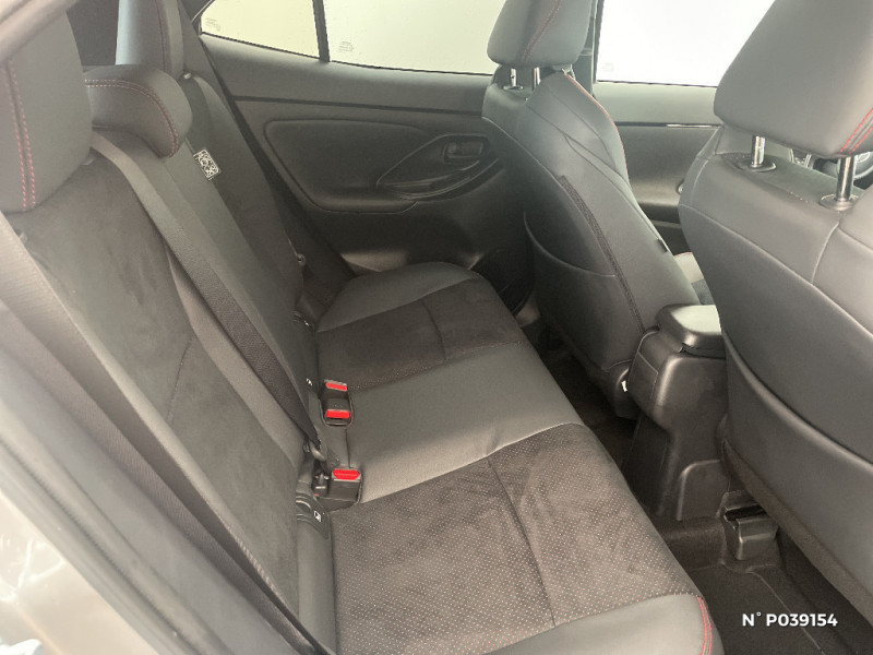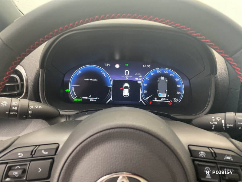 Système multimédia Toyota Smart Connect avec écran tactile 10,5" haute définition, Bluetooth, Radio FM et DAB (digitale), système de connectivité smartphone Apple CarPlay et Android Auto (sans fil), Services intelligents avec Navigation connectée avec infotrafic en temps réel, mises à jour cartographiques, assistant vocal "Hey Toyota" et recherche de points d'intérêts (inclus 4 ans) / Antenne de toit type requin / Attaches de coffre / Badge "GR SPORT" AV/AR / Boîte automatique à variation continue / Carrosserie bi-ton / Centre de gravité rabaissé et suspensions raffermie / Ciel de toit noir / Clé digitale / Clé GR SPORT / Clignotants AR LED séquentiels / Connectivité smartphone Apple CarPlay et Android Auto sans fil / Contrôle de traction (TCS) / Diffuseur AR / Double plancher du coffre modulable / Eclairage d'ambiance intérieur / Ecran TFT 12.3" / Ecrous antivol / Feux Full LED (AV/AR) / Grille de calandre et de parechocs AV en nid d'abeille / Lampe de plafonnier AR / Pédalier en aluminium / Poches aumonières au dos des sièges AV / Prise 12 V dans le coffre / Purificateur d'air ionique Nanoe / Rails de toit noir / Réglage lombaire électrique pour le siège conducteur / Rétroviseur intérieur électrochromatique / Sellerie en suédine noire perforée rouge et revêtement Premium / Services connectés de contrôle à distance MyToyota (inclus 4 ans) / Services connectés standards MyToyota (inclus 10 ans) / Seuils de portes en aluminium siglés GR SPORT / Sièges AR rabattables 40:20:40 / Système d'appel d'urgence automatique "E-Call" / Toyota T-MATE / Systemes d'aide à la conduite et au stationnement Avertisseur de circulation AR, Avertisseur d'angles morts, Radars de stationnement AV/AR, Sortie sécurisée des occupants / Toyota T-MATE / Toyota Safety Sense 3 Système de sécurité précollision avec détection des véhicules, piétons et cyclistes, actif également dans les intersections. Alerte de franchissement de ligne avec aide au maintien dans la file, assistant de trajectoire et détecteur de fatigue, Lecture des panneaux de signalisation avec limiteur de vitesse, Gestion automatique des feux de route, Régulateur de vitesse adaptatif intelligent, Système d'arrêt d'urgence autonome , Système d'assistance à la conduite proactive / Volant cuir avec surpiqûres rouges et logo / 6 HP / Système d'ouverture/fermeture et démarrage sans clé "Smart Entry & Start"