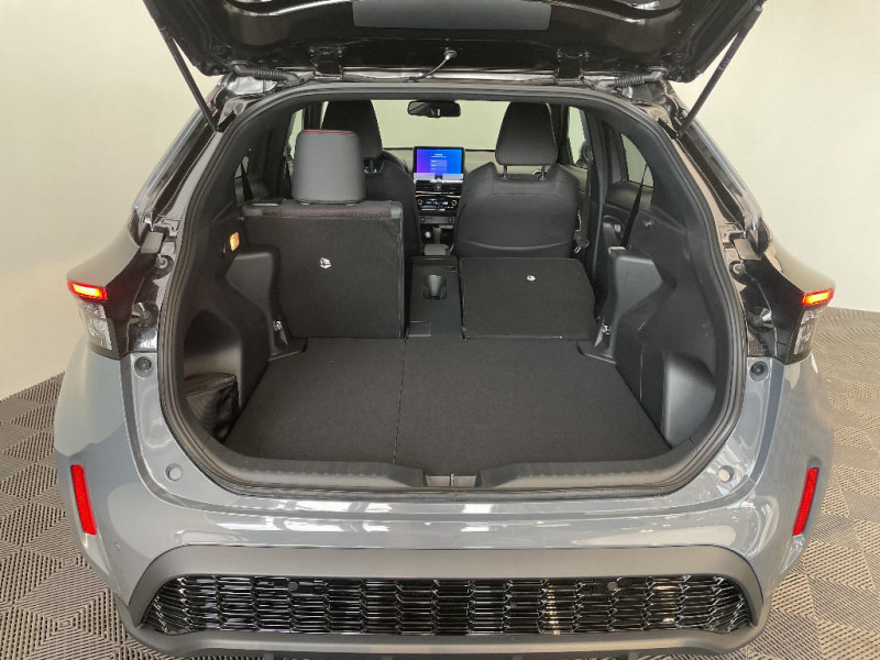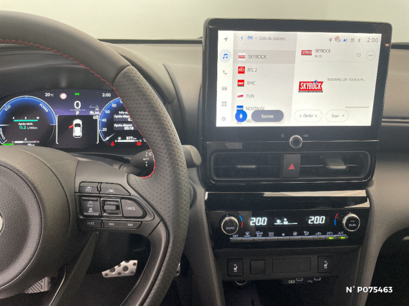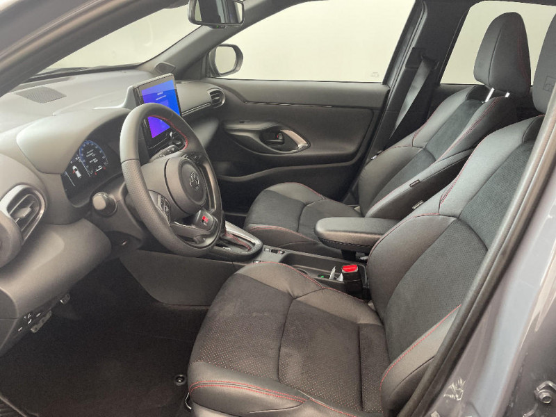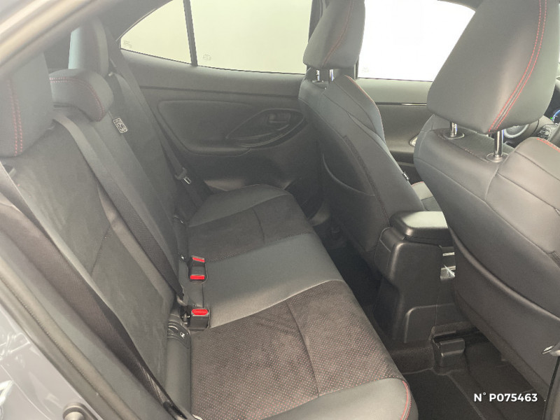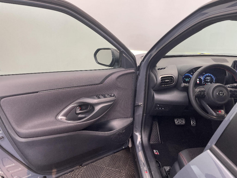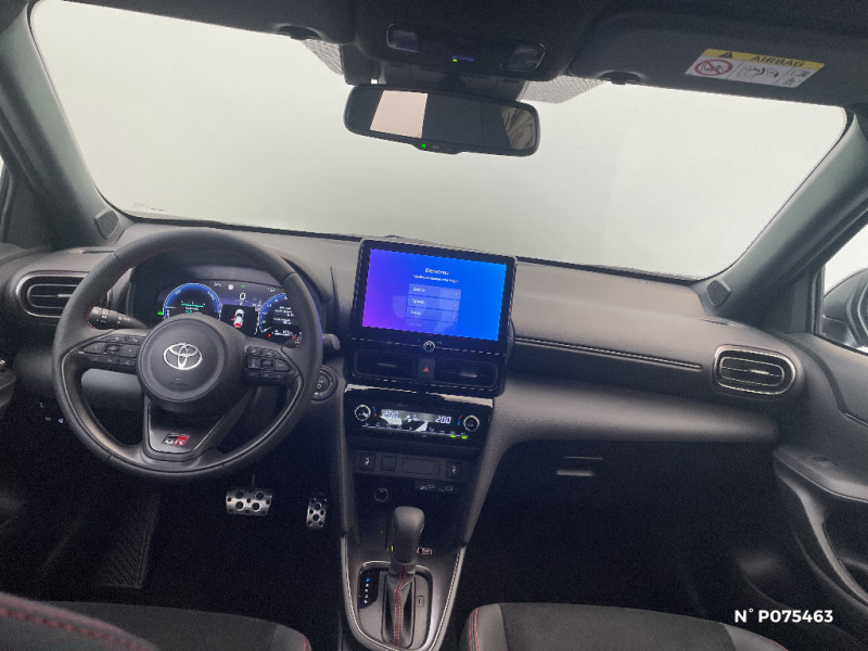 Volant cuir avec surpiqûres rouges et logo / 6 HP / Antenne de toit type requin / Attaches de coffre / Badge "GR SPORT" AV/AR / Boîte automatique à variation continue / Carrosserie bi-ton / Centre de gravité rabaissé et suspensions raffermie / Ciel de toit noir / Clé digitale / Clé GR SPORT / Clignotants AR LED séquentiels / Connectivité smartphone Apple CarPlay et Android Auto sans fil / Contrôle de traction (TCS) / Diffuseur AR / Double plancher du coffre modulable / Eclairage d'ambiance intérieur / Ecran TFT 12.3" / Ecrous antivol / Feux Full LED (AV/AR) / Grille de calandre et de parechocs AV en nid d'abeille / Lampe de plafonnier AR / Pédalier en aluminium / Poches aumonières au dos des sièges AV / Prise 12 V dans le coffre / Purificateur d'air ionique Nanoe / Rails de toit noir / Réglage lombaire électrique pour le siège conducteur / Rétroviseur intérieur électrochromatique / Sellerie en suédine noire perforée rouge et revêtement Premium / Services connectés de contrôle à distance MyToyota (inclus 4 ans) / Services connectés standards MyToyota (inclus 10 ans) / Seuils de portes en aluminium siglés GR SPORT / Sièges AR rabattables 40:20:40 / Système d'appel d'urgence automatique "E-Call" / Système d'ouverture/fermeture et démarrage sans clé "Smart Entry & Start" / Système multimédia Toyota Smart Connect avec écran tactile 10,5" haute définition, Bluetooth, Radio FM et DAB (digitale), système de connectivité smartphone Apple CarPlay et Android Auto (sans fil), Services intelligents avec Navigation connectée avec infotrafic en temps réel, mises à jour cartographiques, assistant vocal "Hey Toyota" et recherche de points d'intérêts (inclus 4 ans) / Toyota T-MATE / Systemes d'aide à la conduite et au stationnement Avertisseur de circulation AR, Avertisseur d'angles morts, Radars de stationnement AV/AR, Sortie sécurisée des occupants / Toyota T-MATE / Toyota Safety Sense 3 Système de sécurité précollision avec détection des véhicules, piétons et cyclistes, actif également dans les intersections. Alerte de franchissement de ligne avec aide au maintien dans la file, assistant de trajectoire et détecteur de fatigue, Lecture des panneaux de signalisation avec limiteur de vitesse, Gestion automatique des feux de route, Régulateur de vitesse adaptatif intelligent, Système d'arrêt d'urgence autonome , Système d'assistance à la conduite proactive