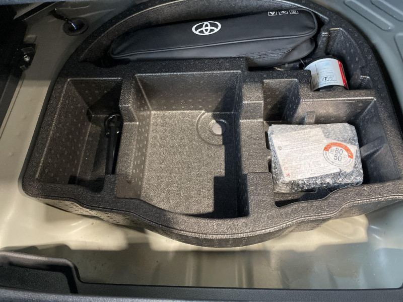 Double plancher du coffre / Ecran couleur tactile multifonction 8" / Ecran TFT 4,2" / Enjoliveurs 16" / Feux AV halogènes / Feux de route automatiques / Peinture Blanc Pur / Sellerie tissu gris / Système d'appel d'urgence automatique "E-Call" / Système d'ouverture/fermeture et démarrage sans clé "Smart Entry & Start" / Toyota Safety Sense Système de sécurité précollision avec détection des véhicules, piétons et cyclistes, actif également dans les intersections. Alerte de franchissement de ligne avec aide au maintien dans la file, assistant de trajectoire et détecteur de fatigue, Lecture des panneaux de signalisation avec limiteur de vitesse, Gestion automatique des feux de route, Régulateur de vitesse adaptatif intelligent / Toyota Smart Connect / 4 HP / Antenne de toit type requin