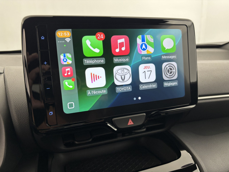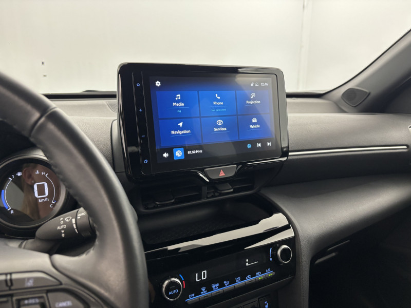 6 HP / Antenne de toit type requin / Clignotants LED séquentiels / Double plancher du coffre / Ecran couleur tactile multifonction 9" / Ecran TFT 4,2" / Feux Full LED (AV/AR) / Jantes alliage 17" (5 doubles-branches) / Rails de toit noir / Rétroviseur intérieur électrochromatique / Sellerie tissu gris / Système d'appel d'urgence automatique "E-Call" / Système d'ouverture/fermeture et démarrage sans clé "Smart Entry & Start" / Système multimédia Toyota Smart Connect : écran tactile 9", navigation connectée et contrôle à distance via l'application MyT (verrouiller/déverrouiller, relancer la climatisation et retrouver ma voiture avec allumage des feux clignotants) et 4 ans de mises à jour cartographiques et de services connectés inclus / Toyota Safety Sense /
