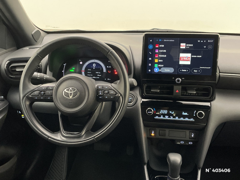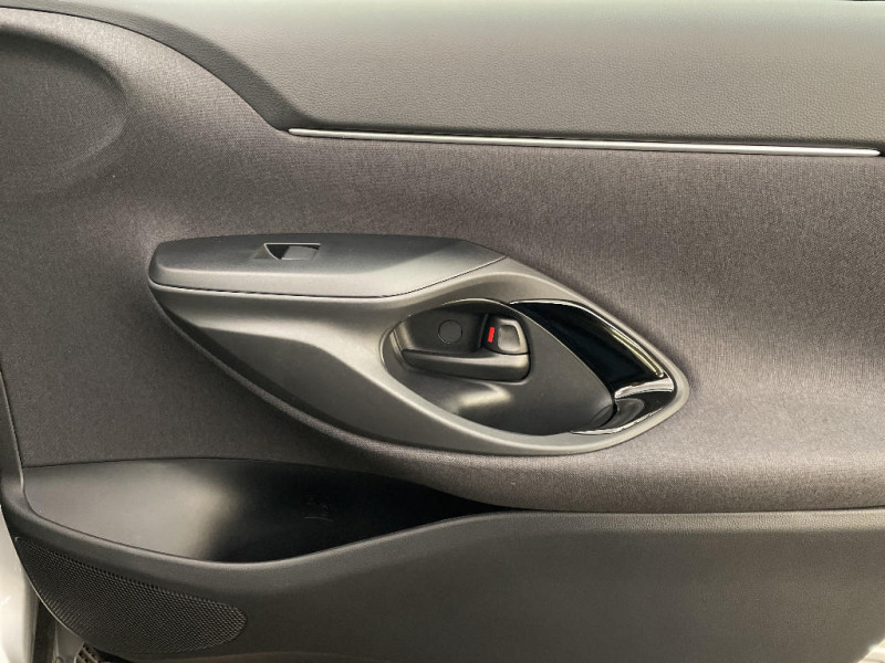 6 HP / Antenne de toit type requin / Boîte automatique à variation continue / Carrosserie monoton / Ciel de toit noir / Clignotants AR LED séquentiels / Connectivité smartphone Apple CarPlay et Android Auto sans fil / Contrôle de traction (TCS) / Ecran TFT 7" / Ecrous antivol / Feux Full LED (AV/AR) / Jantes alliage 17" (5 doubles-branches) / Lampe de plafonnier AR / Rails de toit noir / Rétroviseur intérieur électrochromatique / Sellerie tissu gris / Services connectés de contrôle à distance MyToyota (inclus 4 ans) / Services connectés standards MyToyota (inclus 10 ans) / Seuils de portes en aluminium / Système d'appel d'urgence automatique "E-Call" / Système d'ouverture/fermeture et démarrage sans clé "Smart Entry & Start" / Système multimédia Toyota Smart Connect avec écran tactile 10,5" haute définition, Bluetooth, Radio FM et DAB (digitale), système de connectivité smartphone Apple CarPlay et Android Auto (sans fil), Services intelligents avec Navigation connectée avec infotrafic en temps réel, mises à jour cartographiques, assistant vocal "Hey Toyota" et recherche de points d'intérêts (inclus 4 ans) / Toyota T-MATE / Toyota Safety Sense 3 Système de sécurité précollision avec détection des véhicules, piétons et cyclistes, actif également dans les intersections. Alerte de franchissement de ligne avec aide au maintien dans la file, assistant de trajectoire et détecteur de fatigue, Lecture des panneaux de signalisation avec limiteur de vitesse, Gestion automatique des feux de route, Régulateur de vitesse adaptatif intelligent, Système d'arrêt d'urgence autonome , Système d'assistance à la conduite proactive