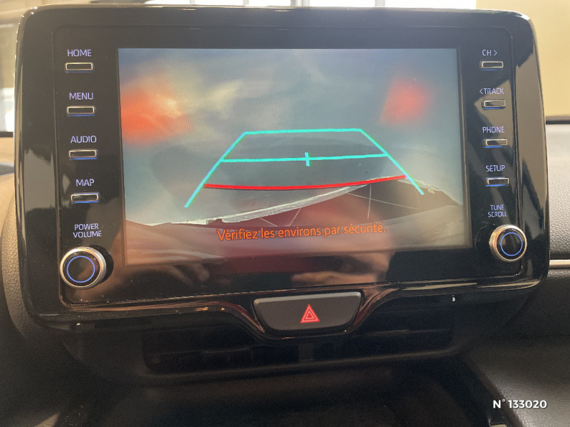 Antenne de toit type requin / Connectivité smartphone Apple CarPlay et Android Auto / Double plancher du coffre / Ecran couleur tactile multifonction 8" / Ecran TFT 4,2" / Feux AV halogènes / Peinture Blanc Pur / Programme "Beyond Zero Academy" / Sellerie tissu gris / Stage Hybride Académie / Système d'appel d'urgence automatique "E-Call" / Système d'ouverture/fermeture et démarrage sans clé "Smart Entry & Start" / Toyota Safety Sense / Toyota Safety Sense Système de sécurité précollision avec détection des véhicules, piétons et cyclistes, actif également dans les intersections. Alerte de franchissement de ligne avec aide au maintien dans la file, assistant de trajectoire et détecteur de fatigue, Lecture des panneaux de signalisation avec limiteur de vitesse, Gestion automatique des feux de route, Régulateur de vitesse adaptatif intelligent / Toyota Touch & Go : système de navigation 3D à écran couleur tactile avec reconnaissance vocale et 3 ans de mises à jour cartographiques et de services connectés inclus / 4 HP