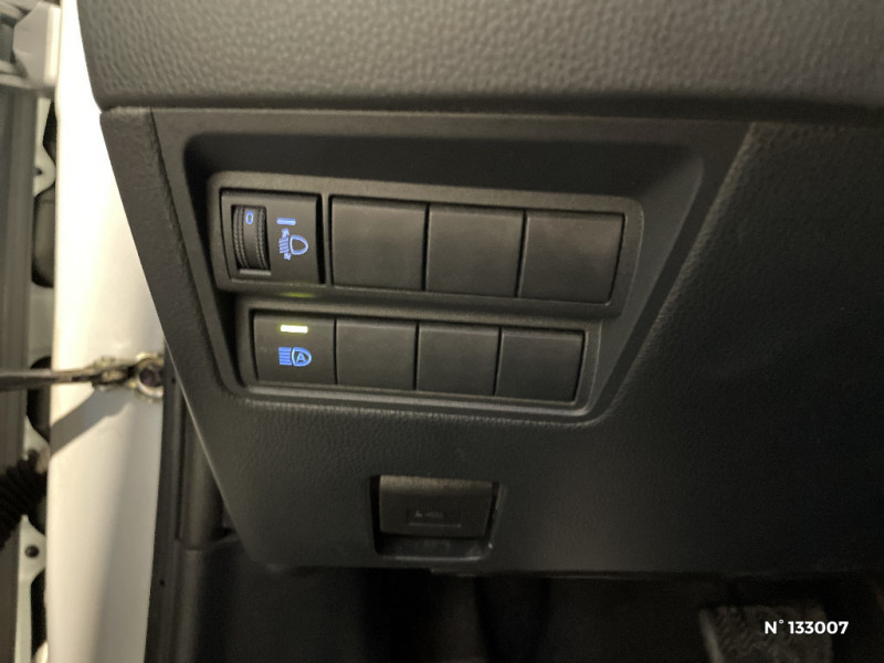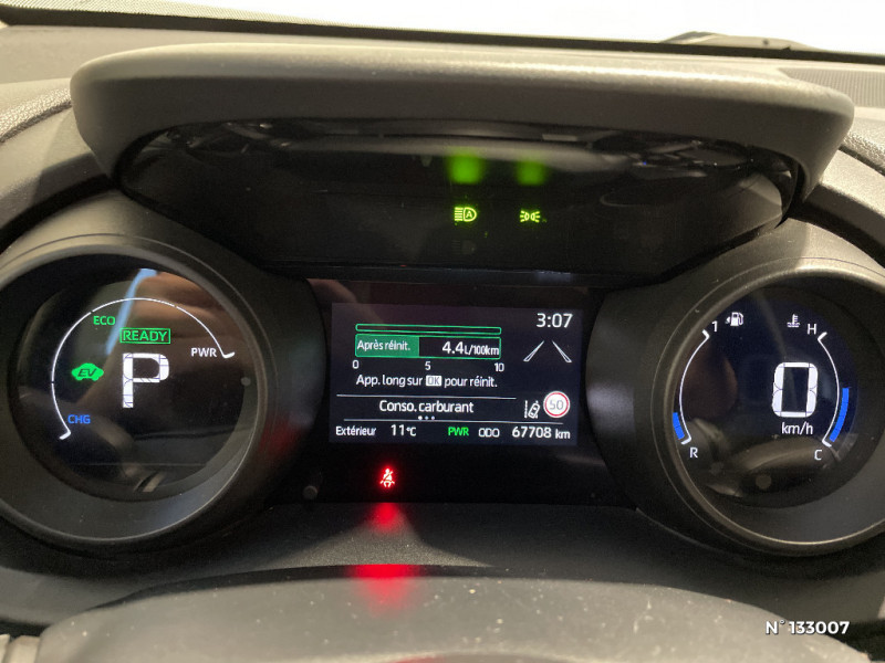 Feux AV halogènes / Peinture Blanc Pur / Programme "Beyond Zero Academy" / Sellerie tissu gris / Stage Hybride Académie / Système d'appel d'urgence automatique "E-Call" / Système d'ouverture/fermeture et démarrage sans clé "Smart Entry & Start" / Toyota Safety Sense / Toyota Safety Sense Système de sécurité précollision avec détection des véhicules, piétons et cyclistes, actif également dans les intersections. Alerte de franchissement de ligne avec aide au maintien dans la file, assistant de trajectoire et détecteur de fatigue, Lecture des panneaux de signalisation avec limiteur de vitesse, Gestion automatique des feux de route, Régulateur de vitesse adaptatif intelligent / Toyota Touch & Go : système de navigation 3D à écran couleur tactile avec reconnaissance vocale et 3 ans de mises à jour cartographiques et de services connectés inclus / 4 HP / Antenne de toit type requin / Connectivité smartphone Apple CarPlay et Android Auto / Double plancher du coffre / Ecran couleur tactile multifonction 8" / Ecran TFT 4,2"