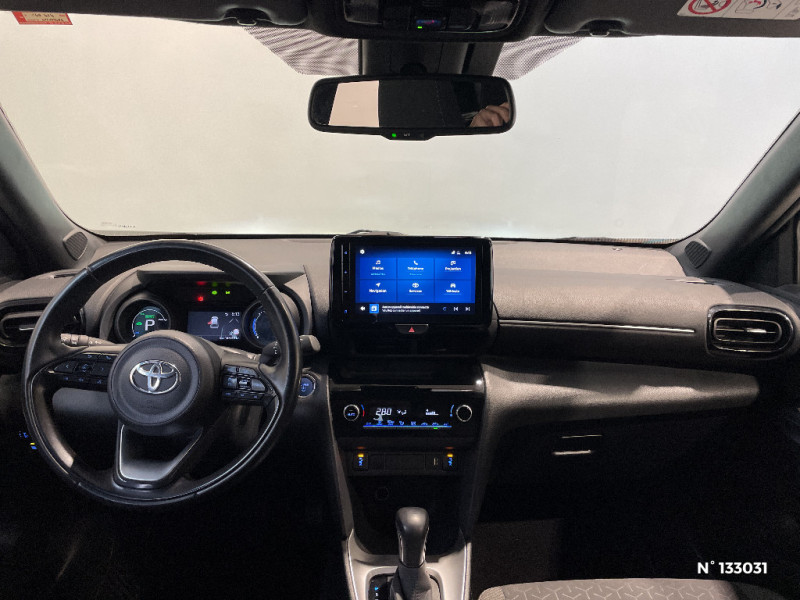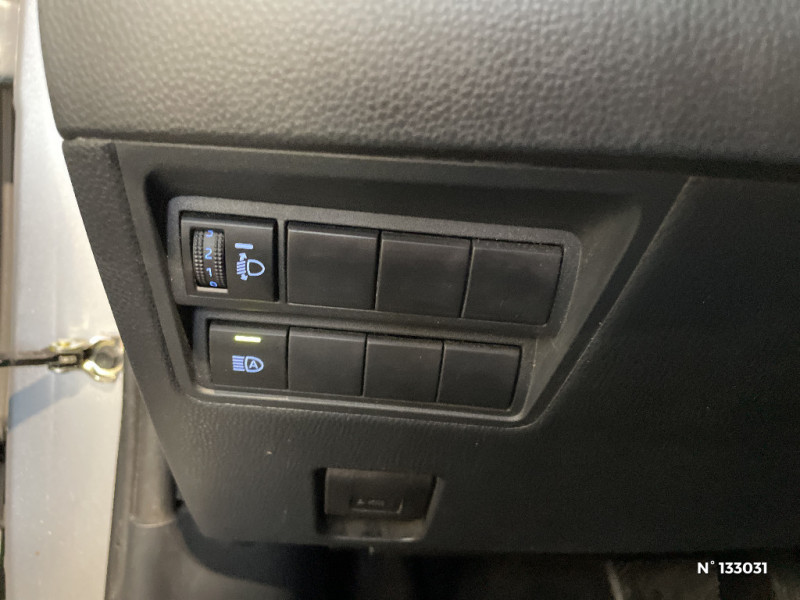 Rails de toit noir / Rails de toit / Système d'appel d'urgence automatique "E-Call" / Système d'ouverture/fermeture et démarrage sans clé "Smart Entry & Start" / Système multimédia Toyota Smart Connect : écran tactile 9", navigation connectée et contrôle à distance via l'application MyT (verrouiller/déverrouiller, climatisation et retrouver ma voiture avec allumage des feux clignotants) / Système multimédia Toyota Smart Connect : écran tactile 9", navigation connectée et contrôle à distance via l'application MyT (verrouiller/déverrouiller, relancer la climatisation et retrouver ma voiture avec allumage des feux clignotants) et 4 ans de mises à jour cartographiques et de services connectés inclus / Toyota Safety Sense / Toyota Safety Sense Système de sécurité précollision avec détection des véhicules, piétons et cyclistes, actif également dans les intersections. Alerte de franchissement de ligne avec aide au maintien dans la file, assistant de trajectoire et détecteur de fatigue, Lecture des panneaux de signalisation avec limiteur de vitesse, Gestion automatique des feux de route, Régulateur de vitesse adaptatif intelligent / 6 HP / Antenne de toit type requin / Clignotants LED séquentiels / Double plancher du coffre / Ecran couleur tactile multifonction 9" / Ecran TFT 4,2" / Feux AV/AR avec signature lumineuse Full LED / Feux de route adaptatifs / Feux de route automatiques / Feux Full LED (AV/AR) / Rétroviseur intérieur électrochromatique / Sellerie tissu gris / Jantes alliage 17" (5 doubles-branches) / Peinture Blanc Pur