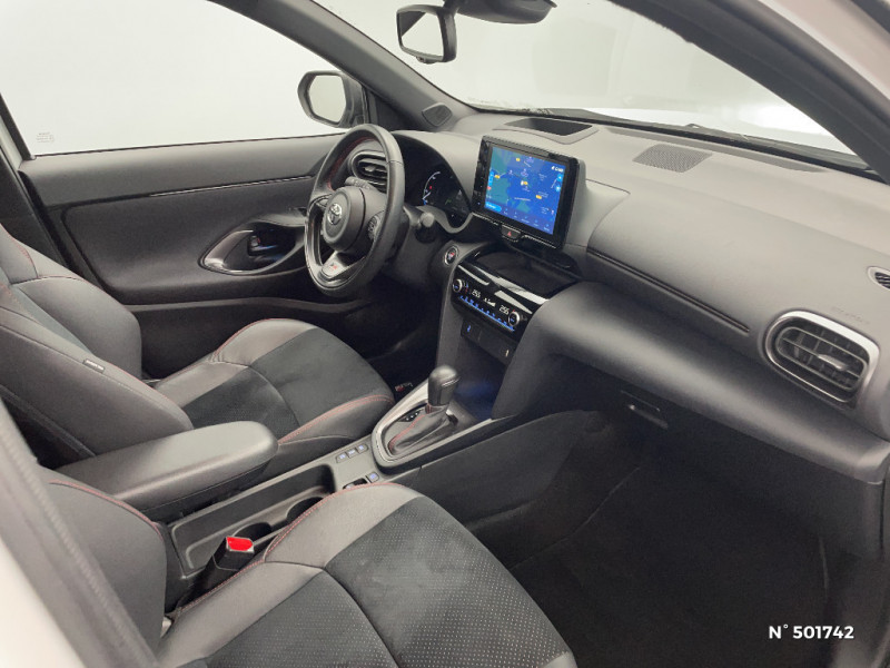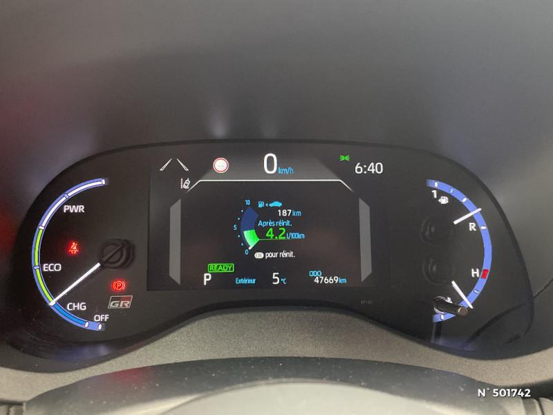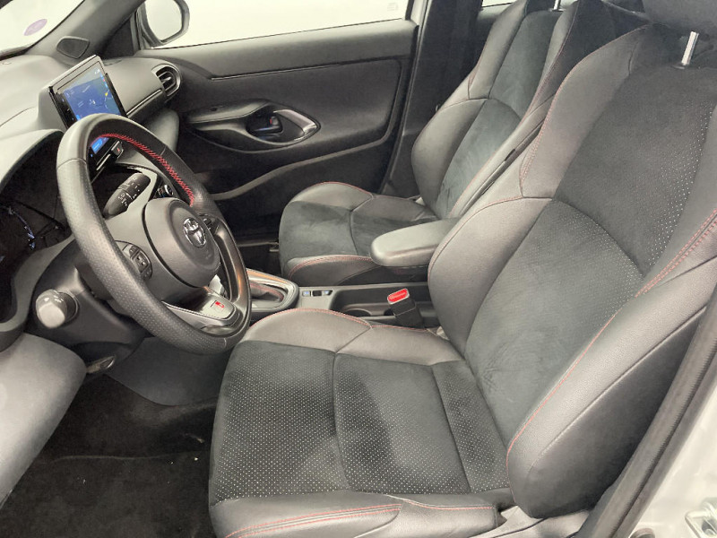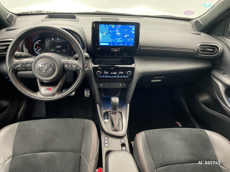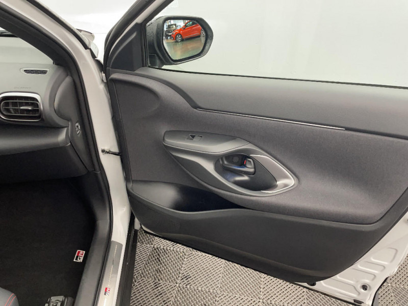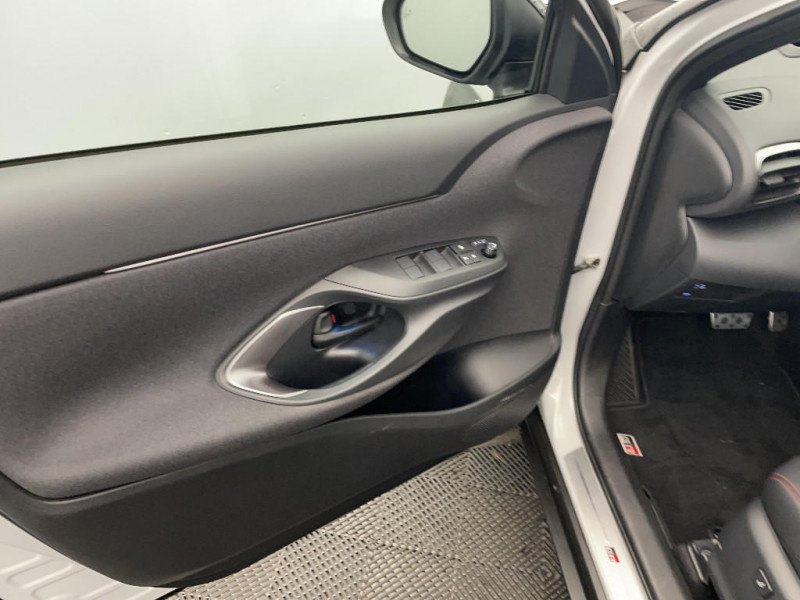 6 HP / Avertisseur de circulation AR (RCTA) / Ecran couleur tactile multifonction 8" / Feux Full LED (AV/AR) / Garde au sol abaissée de 10 mm / Grille de calandre et de parechocs AV en nid d'abeille / Réglage lombaire électrique pour le siège conducteur / Sellerie Ultrasuede noir perforé rouge avec renforts latéraux en similicuir, surpiqûres rouges et logo / Seuils de portes en aluminium siglés GR SPORT / Sièges AR rabattables 40:20:40 / Système d'ouverture/fermeture et démarrage sans clé "Smart Entry & Start" / Toyota Safety Sense Système de sécurité précollision avec détection des véhicules, piétons et cyclistes, actif également dans les intersections. Alerte de franchissement de ligne avec aide au maintien dans la file, assistant de trajectoire et détecteur de fatigue, Lecture des panneaux de signalisation avec limiteur de vitesse, Gestion automatique des feux de route, Régulateur de vitesse adaptatif intelligent / Volant cuir avec surpiqûres rouges et logo