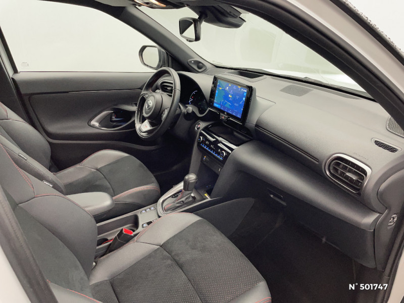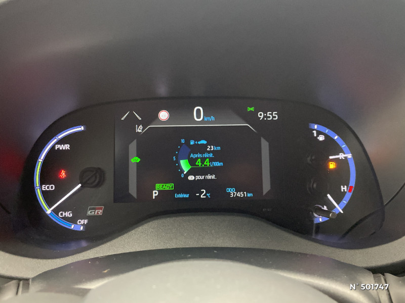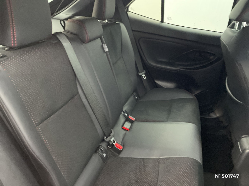 Volant cuir avec surpiqûres rouges et logo / 6 HP / Antenne de toit type requin / Attaches de coffre / Avertisseur de circulation AR (RCTA) / Badge "GR SPORT" / Badges AV/AR / Carrosserie bi-ton / Centre de gravité rabaissé et suspensions raffermie / Clignotants LED séquentiels / Diffuseur AR / Double plancher du coffre modulable / Eclairage d'ambiance intérieur / Ecran couleur tactile multifonction 8" / Ecran TFT 7" / Feux AV/AR avec signature lumineuse Full LED / Feux de route adaptatifs / Feux de route automatiques / Feux Full LED (AV/AR) / Garde au sol abaissée de 10 mm / Grille de calandre AV en nid d'abeille / Grille de calandre et de parechocs AV en nid d'abeille / Grille de parechoc en nid d'abeille / Jantes alliage 18" (5 doubles-branches) / Logo (volant et bouton Start ) / Pédalier en aluminium / Poches aumonières au dos des sièges AV / Purificateur d'air ionique Nanoe / Réglage lombaire du siège conducteur / Réglage lombaire électrique pour le siège conducteur / Rétroviseur intérieur électrochromatique / Sellerie Ultrasuede / Sellerie Ultrasuede noir perforé rouge avec renforts latéraux en similicuir, surpiqûres rouges et logo / Seuils de portes en aluminium siglés GR SPORT / Ecran TFT 7" avec logo / Ecrous antivol / Sièges AR rabattables 40:20:40 / Suspension raffermies / Système d'appel d'urgence automatique "E-Call" / Système d'ouverture/fermeture et démarrage sans clé "Smart Entry & Start" / Toyota Safety Sense / Toyota Safety Sense Système de sécurité précollision avec détection des véhicules, piétons et cyclistes, actif également dans les intersections. Alerte de franchissement de ligne avec aide au maintien dans la file, assistant de trajectoire et détecteur de fatigue, Lecture des panneaux de signalisation avec limiteur de vitesse, Gestion automatique des feux de route, Régulateur de vitesse adaptatif intelligent