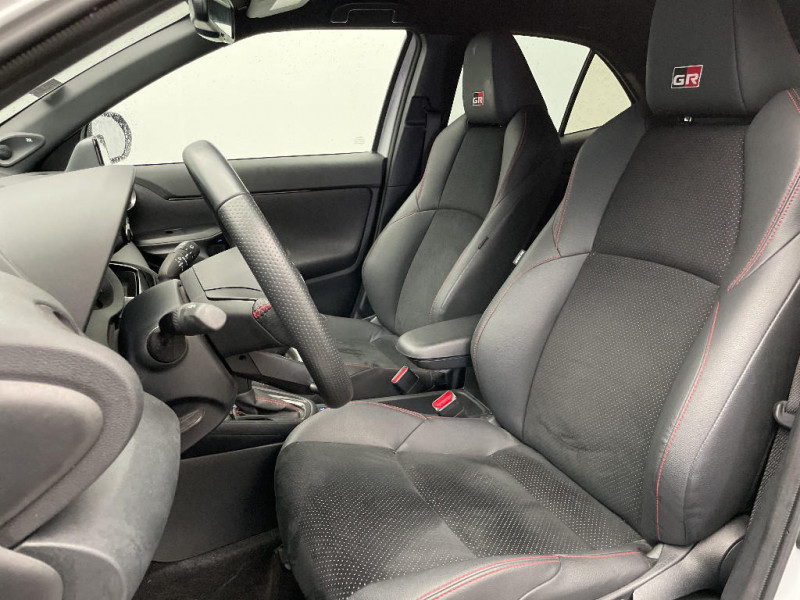 Système d'appel d'urgence automatique "E-Call" / Système d'ouverture/fermeture et démarrage sans clé "Smart Entry & Start" / Toyota Safety Sense Système de sécurité précollision avec détection des véhicules, piétons et cyclistes, actif également dans les intersections. Alerte de franchissement de ligne avec aide au maintien dans la file, assistant de trajectoire et détecteur de fatigue, Lecture des panneaux de signalisation avec limiteur de vitesse, Gestion automatique des feux de route, Régulateur de vitesse adaptatif intelligent / Volant cuir avec surpiqûres rouges et logo / 6 HP / Toyota Safety Sense / Antenne de toit type requin / Attaches de coffre / Avertisseur de circulation AR (RCTA) / Badge "GR SPORT" / Badges AV/AR / Carrosserie bi-ton / Centre de gravité rabaissé et suspensions raffermie / Clignotants LED séquentiels / Diffuseur AR / Double plancher du coffre modulable / Eclairage d'ambiance intérieur / Ecran couleur tactile multifonction 8" / Ecran TFT 7" / Ecran TFT 7" avec logo / Ecrous antivol / Feux AV/AR avec signature lumineuse Full LED / Feux de route adaptatifs / Feux de route automatiques / Feux Full LED (AV/AR) / Garde au sol abaissée de 10 mm / Grille de calandre AV en nid d'abeille / Grille de calandre et de parechocs AV en nid d'abeille / Grille de parechoc en nid d'abeille / Jantes alliage 18" (5 doubles-branches) / Logo (volant et bouton Start ) / Pédalier en aluminium / Poches aumonières au dos des sièges AV / Purificateur d'air ionique Nanoe / Réglage lombaire du siège conducteur / Réglage lombaire électrique pour le siège conducteur / Rétroviseur intérieur électrochromatique / Sellerie Ultrasuede / Sellerie Ultrasuede noir perforé rouge avec renforts latéraux en similicuir, surpiqûres rouges et logo / Seuils de portes en aluminium siglés GR SPORT / Sièges AR rabattables 40:20:40 / Suspension raffermies