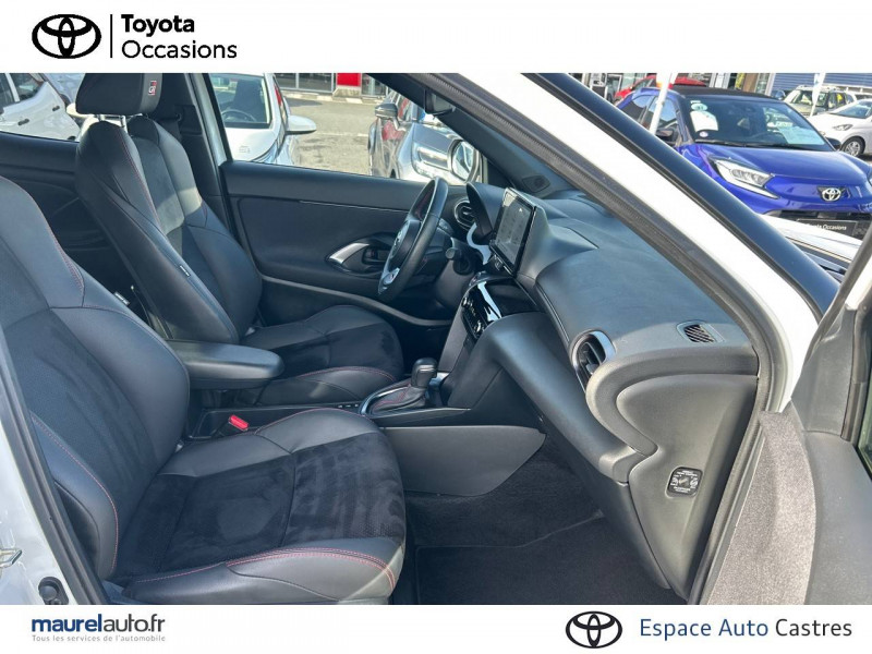 6 HP / Antenne de toit type requin / Attaches de coffre / Avertisseur de circulation AR (RCTA) / Badges AV/AR / Carrosserie bi-ton / Centre de gravité rabaissé et suspensions raffermie / Clignotants LED séquentiels / Diffuseur AR / Double plancher du coffre modulable / Eclairage d'ambiance intérieur / Ecran couleur tactile multifonction 8" / Ecran TFT 7" avec logo / Ecrous antivol / Feux Full LED (AV/AR) / Grille de calandre et de parechocs AV en nid d'abeille / Jantes alliage 18" (5 doubles-branches) / Logo (volant et bouton Start ) / Pédalier en aluminium / Poches aumonières au dos des sièges AV / Purificateur d'air ionique Nanoe / Réglage lombaire électrique pour le siège conducteur / Rétroviseur intérieur électrochromatique / Sellerie Ultrasuede noir perforé rouge avec renforts latéraux en similicuir, surpiqûres rouges et logo / Seuils de portes en aluminium siglés GR SPORT / Sièges AR rabattables 40:20:40 / Système d'appel d'urgence automatique "E-Call" / Système d'ouverture/fermeture et démarrage sans clé "Smart Entry & Start" / Toyota Safety Sense / Volant cuir avec surpiqûres rouges et logo
