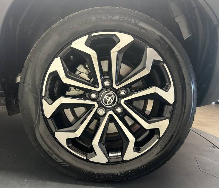 6 HP / Antenne de toit type requin / Carrosserie monoton / Ciel de toit noir / Clignotants AR LED séquentiels / Connectivité smartphone Apple CarPlay et Android Auto sans fil / Ecran TFT 7" / Ecrous antivol / Feux Full LED (AV/AR) / Jantes alliage 17" (5 doubles-branches) / Lampe de plafonnier AR / Rails de toit noir / Rétroviseur intérieur électrochromatique / Sellerie tissu gris / Services connectés de contrôle à distance MyToyota (inclus 4 ans) / Services connectés standards MyToyota (inclus 10 ans) / Seuils de portes en aluminium / Système d'appel d'urgence automatique "E-Call" / Système d'ouverture/fermeture et démarrage sans clé "Smart Entry & Start" / Système multimédia Toyota Smart Connect avec écran tactile 10,5" haute définition, Bluetooth, Radio FM et DAB (digitale), système de connectivité smartphone Apple CarPlay et Android Auto (sans fil), Services intelligents avec Navigation connectée avec infotrafic en temps réel, mises à jour cartographiques, assistant vocal "Hey Toyota" et recherche de points d'intérêts (inclus 4 ans) / Toyota T-MATE / Toyota Safety Sense 3 Système de sécurité précollision avec détection des véhicules, piétons et cyclistes, actif également dans les intersections. Alerte de franchissement de ligne avec aide au maintien dans la file, assistant de trajectoire et détecteur de fatigue, Lecture des panneaux de signalisation avec limiteur de vitesse, Gestion automatique des feux de route, Régulateur de vitesse adaptatif intelligent, Système d'arrêt d'urgence autonome , Système d'assistance à la conduite proactive