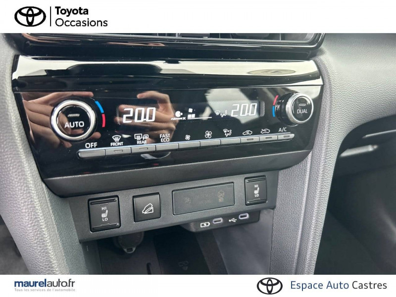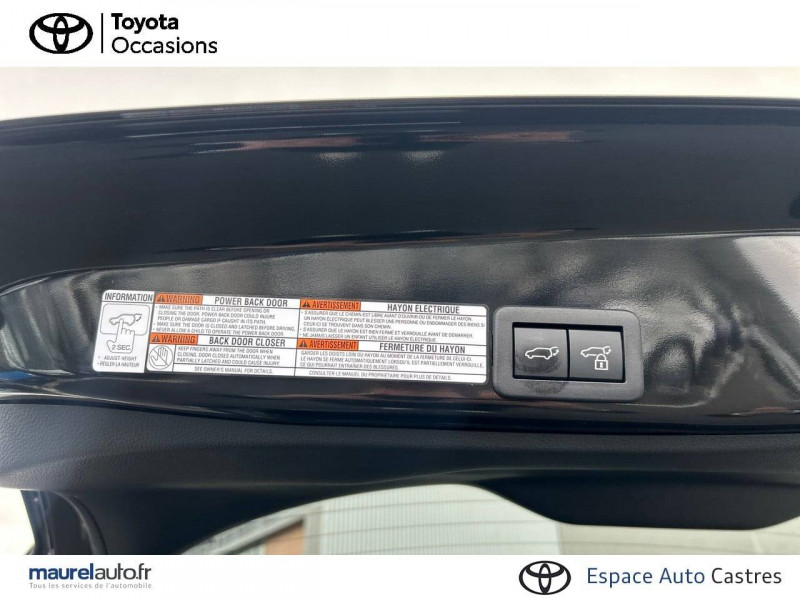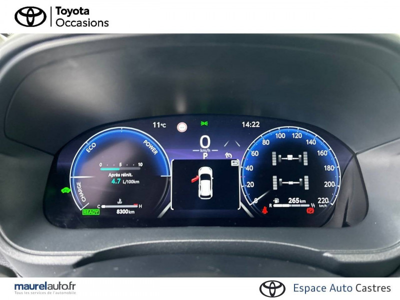 6 HP / Antenne de toit type requin / Attaches de coffre / Carrosserie bi-ton / Ciel de toit gris / Clignotants AR LED séquentiels / Connectivité smartphone Apple CarPlay et Android Auto sans fil / Eclairage d'ambiance intérieur / Ecran TFT 12.3" / Ecrous antivol / Feux Full LED (AV/AR) / Jantes alliage 18" bi-ton anthracite (10 doubles-branches) / Lampe de plafonnier AR / Poches aumonières au dos des sièges AV / Prise 12V dans le coffre / Purificateur d'air ionique Nanoe / Rails de toit noir / Réglage lombaire électrique pour le siège conducteur / Rétroviseur intérieur électrochromatique / Sellerie taupe et revêtement Premium / Services connectés de contrôle à distance MyToyota (inclus 4 ans) / Services connectés standards MyToyota (inclus 10 ans) / Seuils de portes en aluminium / Sièges AR rabattables 40:20:40 / Système d'appel d'urgence automatique "E-Call" / Système d'ouverture/fermeture et démarrage sans clé "Smart Entry & Start" / Système multimédia Toyota Smart Connect avec écran tactile 10,5" haute définition, Bluetooth, Radio FM et DAB (digitale), système de connectivité smartphone Apple CarPlay et Android Auto (sans fil), Services intelligents avec Navigation connectée avec infotrafic en temps réel, mises à jour cartographiques, assistant vocal "Hey Toyota" et recherche de points d'intérêts (inclus 4 ans) / Toyota T-MATE / Systemes d'aide à la conduite et au stationnement Avertisseur de circulation AR, Avertisseur d'angles morts, Radars de stationnement AV/AR, Sortie sécurisée des occupants / Toyota T-MATE / Toyota Safety Sense 3 Système de sécurité précollision avec détection des véhicules, piétons et cyclistes, actif également dans les intersections. Alerte de franchissement de ligne avec aide au maintien dans la file, assistant de trajectoire et détecteur de fatigue, Lecture des panneaux de signalisation avec limiteur de vitesse, Gestion automatique des feux de route, Régulateur de vitesse adaptatif intelligent, Système d'arrêt d'urgence autonome , Système d'assistance à la conduite proactive