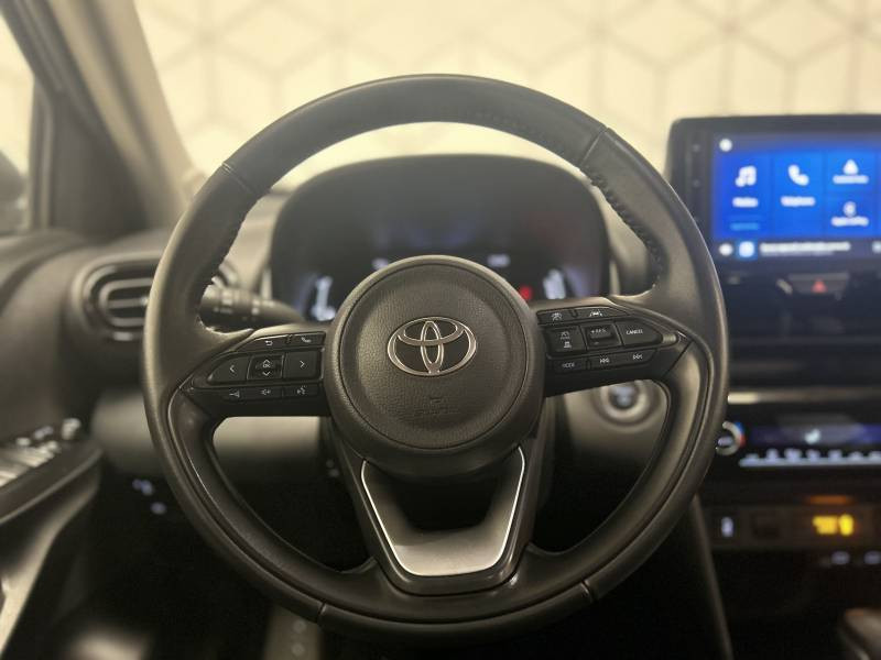 6 HP / Antenne de toit type requin / Boîte automatique à variation continue / Carrosserie monoton / Ciel de toit gris / Connectivité smartphone Apple CarPlay et Android Auto sans fil / Contrôle de traction (TCS) / Double plancher du coffre / Ecran TFT 7" / Ecrous antivol / Feux AV halogènes / Lampe de plafonnier AR / Programme "Toyota Experience" / Réglage lombaire électrique pour le siège conducteur / Rétroviseur intérieur électrochromatique / Sellerie tissu gris foncé / Services connectés standards MyToyota (inclus 10 ans) / Système audio Toyota Touch 3 écran tactile 9", radio digitale (DAB), Bluetooth / Système d'appel d'urgence automatique "E-Call" / Système d'ouverture/fermeture et démarrage sans clé "Smart Entry & Start" / Toyota T-MATE / Systemes d'aide à la conduite et au stationnement Avertisseur de circulation AR, Avertisseur d'angles morts, Radars de stationnement AV/AR, Sortie sécurisée des occupants / Toyota T-MATE / Toyota Safety Sense 3 Système de sécurité précollision avec détection des véhicules, piétons et cyclistes, actif également dans les intersections. Alerte de franchissement de ligne avec aide au maintien dans la file, assistant de trajectoire et détecteur de fatigue, Lecture des panneaux de signalisation avec limiteur de vitesse, Gestion automatique des feux de route, Régulateur de vitesse adaptatif intelligent, Système d'arrêt d'urgence autonome , Système d'assistance à la conduite proactive
