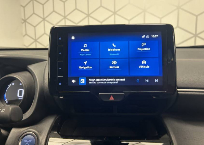 6 HP / Antenne de toit type requin / Clignotants LED séquentiels / Double plancher du coffre / Ecran couleur tactile multifonction 9" / Ecran TFT 4,2" / Feux Full LED (AV/AR) / Jantes alliage 17" (5 doubles-branches) / Peinture Blanc Pur / Rails de toit noir / Rétroviseur intérieur électrochromatique / Sellerie tissu gris / Système d'appel d'urgence automatique "E-Call" / Système d'ouverture/fermeture et démarrage sans clé "Smart Entry & Start" / Système multimédia Toyota Smart Connect : écran tactile 9", navigation connectée et contrôle à distance via l'application MyT (verrouiller/déverrouiller, climatisation et retrouver ma voiture avec allumage des feux clignotants) / Toyota Safety Sense