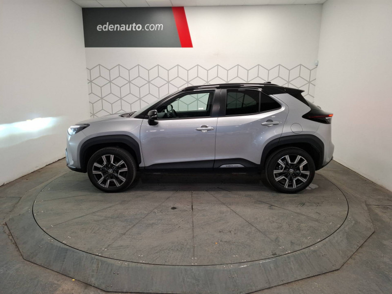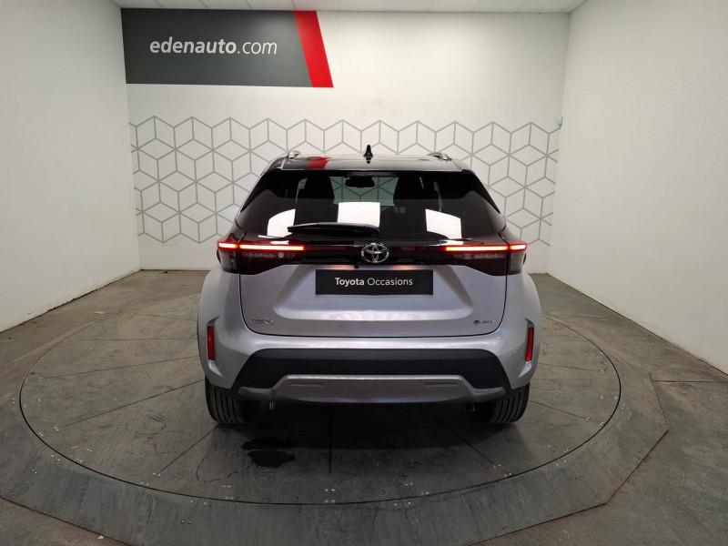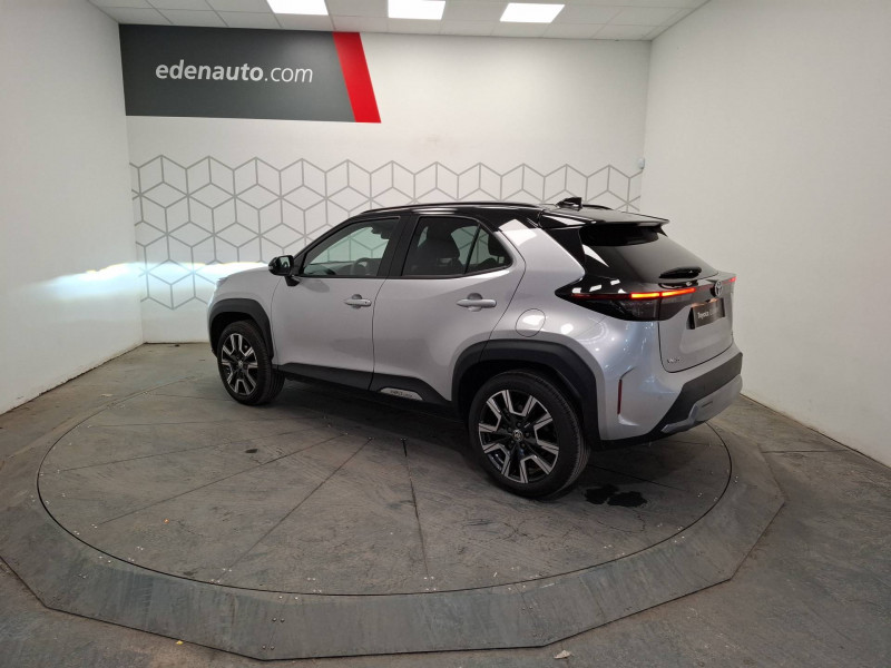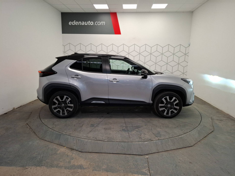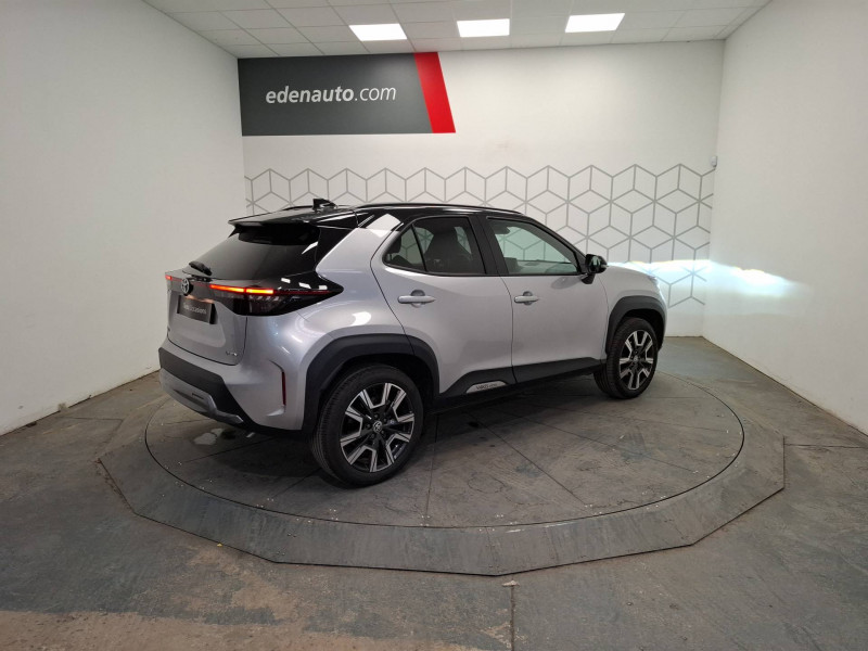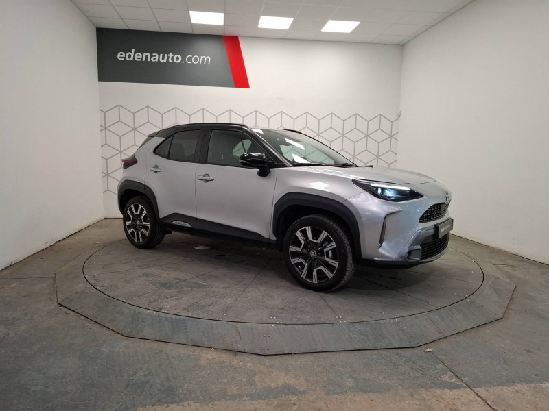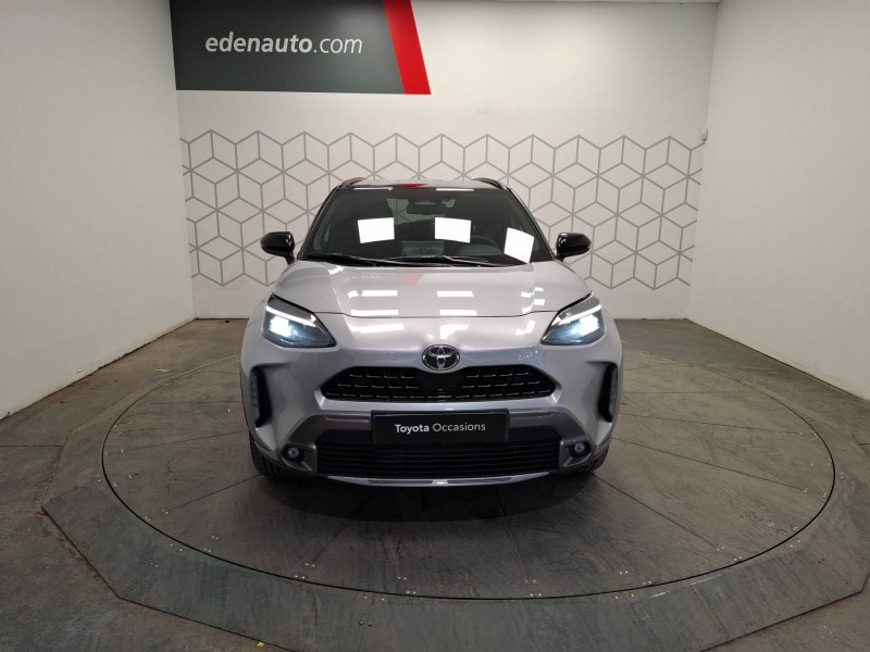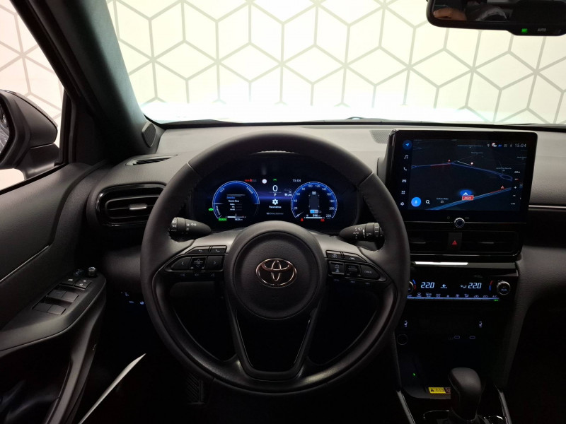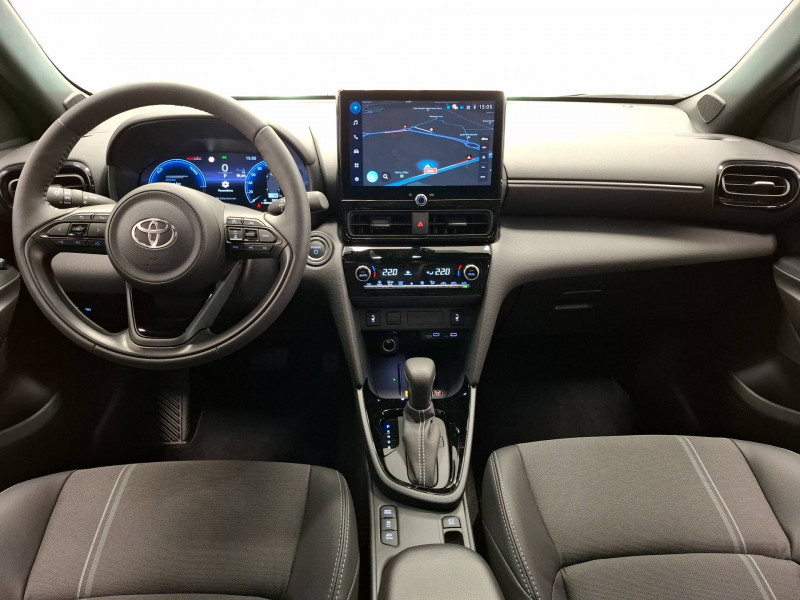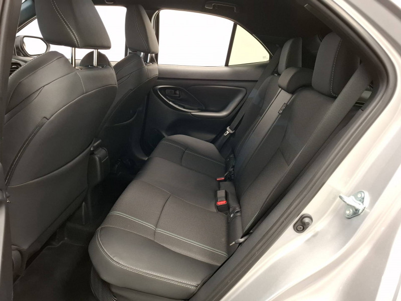 6 HP / Antenne de toit type requin / Attaches de coffre / Boîte automatique à variation continue / Carrosserie bi-ton / Ciel de toit gris / Clé digitale / Clignotants AR LED séquentiels / Connectivité smartphone Apple CarPlay et Android Auto sans fil / Contrôle de traction (TCS) / Double plancher du coffre modulable / Eclairage d'ambiance intérieur / Ecran TFT 12.3" / Ecrous antivol / Feux Full LED (AV/AR) / Jantes alliage 18" bi-ton (5 doublesbranches) / Lampe de plafonnier AR / Poches aumonières au dos des sièges AV / Prise 12 V dans le coffre / Purificateur d'air ionique Nanoe / Rails de toit noir / Réglage lombaire électrique pour le siège conducteur / Rétroviseur intérieur électrochromatique / Sellerie tissu noir et revêtement Premium / Services connectés de contrôle à distance MyToyota (inclus 4 ans) / Services connectés standards MyToyota (inclus 10 ans) / Seuils de portes en aluminium / Sièges AR rabattables 40:20:40 / Système d'appel d'urgence automatique "E-Call" / Système d'ouverture/fermeture et démarrage sans clé "Smart Entry & Start" / Système multimédia Toyota Smart Connect avec écran tactile 10,5" haute définition, Bluetooth, Radio FM et DAB (digitale), système de connectivité smartphone Apple CarPlay et Android Auto (sans fil), Services intelligents avec Navigation connectée avec infotrafic en temps réel, mises à jour cartographiques, assistant vocal "Hey Toyota" et recherche de points d'intérêts (inclus 4 ans) / Toyota T-MATE / Systemes d'aide à la conduite et au stationnement Avertisseur de circulation AR, Avertisseur d'angles morts, Radars de stationnement AV/AR, Sortie sécurisée des occupants / Toyota T-MATE / Toyota Safety Sense 3 Système de sécurité précollision avec détection des véhicules, piétons et cyclistes, actif également dans les intersections. Alerte de franchissement de ligne avec aide au maintien dans la file, assistant de trajectoire et détecteur de fatigue, Lecture des panneaux de signalisation avec limiteur de vitesse, Gestion automatique des feux de route, Régulateur de vitesse adaptatif intelligent, Système d'arrêt d'urgence autonome , Système d'assistance à la conduite proactive