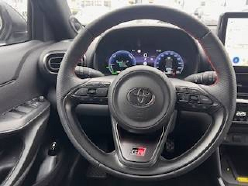6 HP / Antenne de toit type requin / Attaches de coffre / Badge "GR SPORT" AV/AR / Boîte automatique à variation continue / Carrosserie bi-ton / Centre de gravité rabaissé et suspensions raffermie / Ciel de toit noir / Clé digitale / Clé GR SPORT / Clignotants AR LED séquentiels / Connectivité smartphone Apple CarPlay et Android Auto sans fil / Contrôle de traction (TCS) / Diffuseur AR / Double plancher du coffre modulable / Eclairage d'ambiance intérieur / Ecran TFT 12.3" / Ecrous antivol / Feux Full LED (AV/AR) / Grille de calandre et de parechocs AV en nid d'abeille / Lampe de plafonnier AR / Pédalier en aluminium / Poches aumonières au dos des sièges AV / Prise 12 V dans le coffre / Purificateur d'air ionique Nanoe / Rails de toit noir / Réglage lombaire électrique pour le siège conducteur / Rétroviseur intérieur électrochromatique / Sellerie en suédine noire perforée rouge et revêtement Premium / Services connectés de contrôle à distance MyToyota (inclus 4 ans) / Services connectés standards MyToyota (inclus 10 ans) / Seuils de portes en aluminium siglés GR SPORT / Sièges AR rabattables 40:20:40 / Système d'appel d'urgence automatique "E-Call" / Système d'ouverture/fermeture et démarrage sans clé "Smart Entry & Start" / Système multimédia Toyota Smart Connect avec écran tactile 10,5" haute définition, Bluetooth, Radio FM et DAB (digitale), système de connectivité smartphone Apple CarPlay et Android Auto (sans fil), Services intelligents avec Navigation connectée avec infotrafic en temps réel, mises à jour cartographiques, assistant vocal "Hey Toyota" et recherche de points d'intérêts (inclus 4 ans) / Toyota T-MATE / Systemes d'aide à la conduite et au stationnement Avertisseur de circulation AR, Avertisseur d'angles morts, Radars de stationnement AV/AR, Sortie sécurisée des occupants / Toyota T-MATE / Toyota Safety Sense 3 Système de sécurité précollision avec détection des véhicules, piétons et cyclistes, actif également dans les intersections. Alerte de franchissement de ligne avec aide au maintien dans la file, assistant de trajectoire et détecteur de fatigue, Lecture des panneaux de signalisation avec limiteur de vitesse, Gestion automatique des feux de route, Régulateur de vitesse adaptatif intelligent, Système d'arrêt d'urgence autonome , Système d'assistance à la conduite proactive / Volant cuir avec surpiqûres rouges et logo