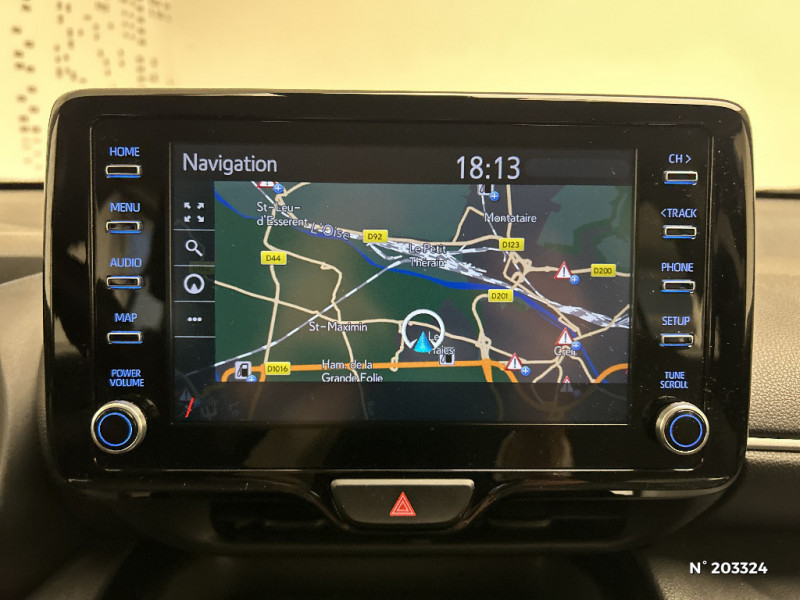 Stage Hybride Académie / Système d'appel d'urgence automatique "E-Call" / Système d'ouverture/fermeture et démarrage sans clé "Smart Entry & Start" / Toyota Safety Sense / Toyota Safety Sense Système de sécurité précollision avec détection des véhicules, piétons et cyclistes, actif également dans les intersections. Alerte de franchissement de ligne avec aide au maintien dans la file, assistant de trajectoire et détecteur de fatigue, Lecture des panneaux de signalisation avec limiteur de vitesse, Gestion automatique des feux de route, Régulateur de vitesse adaptatif intelligent / Toyota Touch & Go : système de navigation 3D à écran couleur tactile avec reconnaissance vocale et 3 ans de mises à jour cartographiques et de services connectés inclus / 4 HP / Antenne de toit type requin / Connectivité smartphone Apple CarPlay et Android Auto / Double plancher du coffre / Ecran couleur tactile multifonction 8" / Ecran TFT 4,2" / Feux AV halogènes / Peinture Blanc Pur / Programme "Beyond Zero Academy" / Sellerie tissu gris
