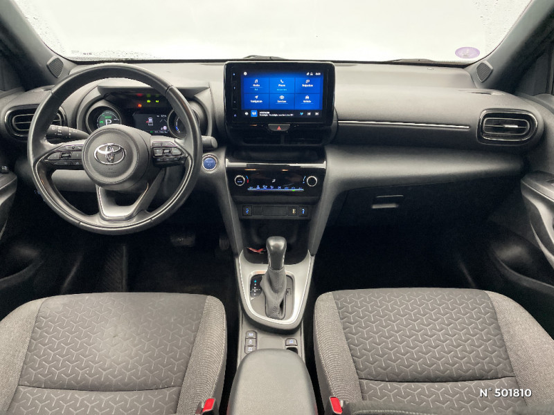 6 HP / Ecran couleur tactile multifonction 9" / Feux Full LED (AV/AR) / Rétroviseur intérieur électrochromatique / Sellerie tissu gris / Système d'ouverture/fermeture et démarrage sans clé "Smart Entry & Start" / Toyota Safety Sense Système de sécurité précollision avec détection des véhicules, piétons et cyclistes, actif également dans les intersections. Alerte de franchissement de ligne avec aide au maintien dans la file, assistant de trajectoire et détecteur de fatigue, Lecture des panneaux de signalisation avec limiteur de vitesse, Gestion automatique des feux de route, Régulateur de vitesse adaptatif intelligent