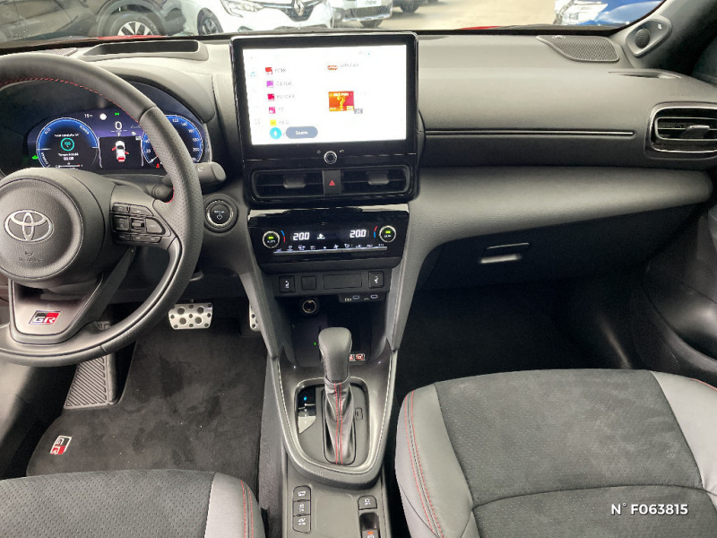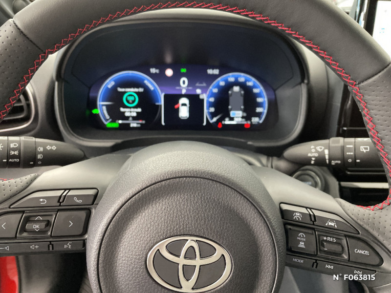 Services connectés de contrôle à distance MyToyota (inclus 4 ans) / Ecran TFT 12.3" / Ecrous antivol / Feux Full LED (AV/AR) / Grille de calandre et de parechocs AV en nid d'abeille / Lampe de plafonnier AR / Pare-brise chauffant (sous les essuie-glaces uniquement) / Pédalier en aluminium / Poche aumonière au dos du siège passager AV / Poches aumonières au dos des sièges AV / Prise 12V dans le coffre / Purificateur d'air ionique Nanoe / Rails de toit noir / Réglage lombaire électrique pour le siège conducteur / Rétroviseur intérieur électrochromatique / Sellerie en suédine noire perforée rouge et revêtement Premium / Antenne de toit type requin / Assistant visuel de conduite (DMC) / Attaches de coffre / Badge "GR SPORT" AV/AR / Boîte automatique à variation continue / Carrosserie bi-ton / Centre de gravité rabaissé et suspensions raffermie / Ciel de toit noir / Clé digitale / Clé GR SPORT / Clignotants AR LED séquentiels / Connectivité smartphone Apple CarPlay et Android Auto sans fil / Contrôle de traction (TCS) / Diffuseur AR GR SPORT / Double plancher du coffre modulable / Eclairage d'ambiance intérieur / Services connectés standards MyToyota (inclus 10 ans) / Seuils de portes en aluminium siglés GR SPORT / Sièges AR rabattables 40:20:40 / Système d'appel d'urgence automatique "E-Call" / Système d'ouverture/fermeture et démarrage sans clé "Smart Entry & Start" / Système multimédia Toyota Smart Connect avec écran tactile 10,5" haute définition, Bluetooth, Radio FM et DAB (digitale), système de connectivité smartphone Apple CarPlay et Android Auto (sans fil), Services intelligents avec Navigation connectée avec infotrafic en temps réel, mises à jour cartographiques, assistant vocal "Hey Toyota" et recherche de points d¿intérêts (inclus 4 ans) / Toyota T-MATE / Systemes d¿aide à la conduite et au stationnement Avertisseur de circulation AR, Avertisseur d¿angles morts, Radars de stationnement AV/AR, Sortie sécurisée des occupants / Toyota T-MATE / Toyota Safety Sense 3 Système de sécurité précollision avec détection des véhicules, piétons et cyclistes, actif également dans les intersections. Alerte de franchissement de ligne avec aide au maintien dans la file, assistant de trajectoire et détecteur de fatigue, Lecture des panneaux de signalisation avec limiteur de vitesse, Gestion automatique des feux de route, Régulateur de vitesse adaptatif intelligent, Système d'arrêt d'urgence autonome , Système d'assistance à la conduite proactive / Volant chauffant / Volant cuir avec surpiqûres rouges et logo / 6 HP