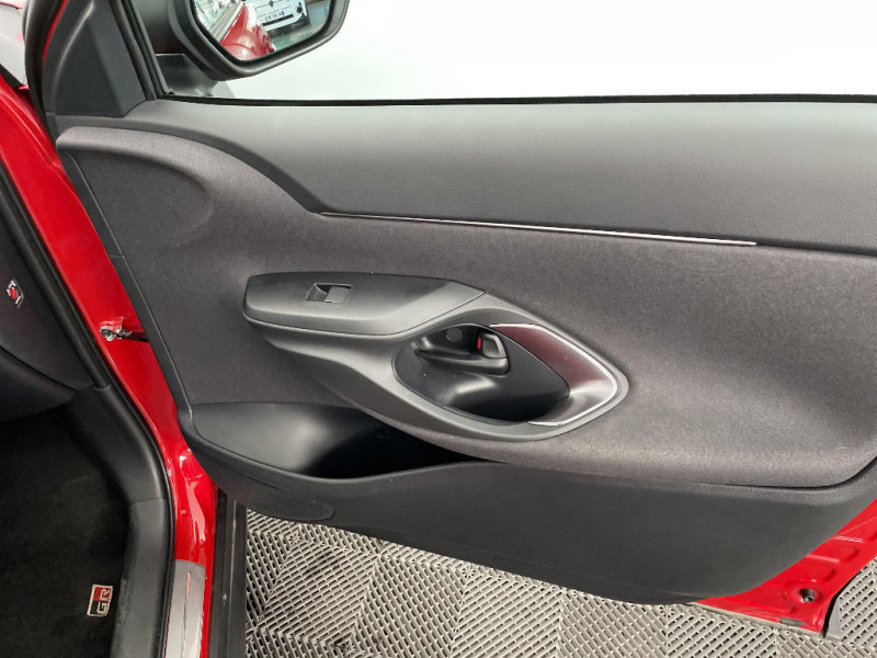 Badge "GR SPORT" AV/AR / Assistant visuel de conduite (DMC) / Carrosserie bi-ton / Connectivité smartphone Apple CarPlay et Android Auto sans fil / Diffuseur AR GR SPORT / Double plancher du coffre modulable / Ecran TFT 12.3" / Feux Full LED (AV/AR) / Pare-brise chauffant (sous les essuie-glaces uniquement) / Pédalier en aluminium / Purificateur d'air ionique Nanoe / Réglage lombaire électrique pour le siège conducteur / Rétroviseur intérieur électrochromatique / Sellerie en suédine noire perforée rouge et revêtement Premium / Seuils de portes en aluminium siglés GR SPORT / Système multimédia Toyota Smart Connect avec écran tactile 10,5" haute définition, Bluetooth, Radio FM et DAB (digitale), système de connectivité smartphone Apple CarPlay et Android Auto (sans fil), Services intelligents avec Navigation connectée avec infotrafic en temps réel, mises à jour cartographiques, assistant vocal "Hey Toyota" et recherche de points d¿intérêts (inclus 4 ans) / Toyota T-MATE / Toyota Safety Sense 3 Système de sécurité précollision avec détection des véhicules, piétons et cyclistes, actif également dans les intersections. Alerte de franchissement de ligne avec aide au maintien dans la file, assistant de trajectoire et détecteur de fatigue, Lecture des panneaux de signalisation avec limiteur de vitesse, Gestion automatique des feux de route, Régulateur de vitesse adaptatif intelligent, Système d'arrêt d'urgence autonome , Système d'assistance à la conduite proactive / Volant chauffant / 6 HP