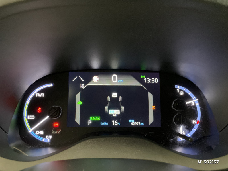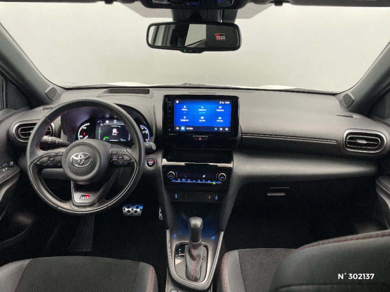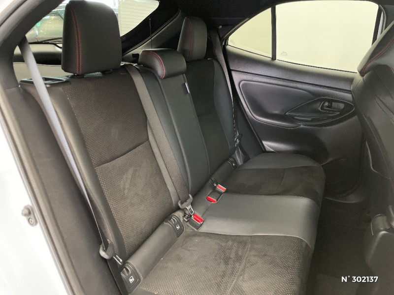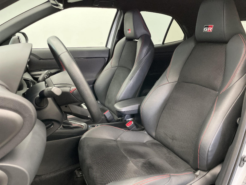 Volant cuir avec surpiqûres rouges et logo / 6 HP / Purificateur d'air ionique Nanoe / Antenne de toit type requin / Attaches de coffre / Avertisseur de circulation AR (RCTA) / Badge "GR SPORT" / Badges AV/AR / Carrosserie bi-ton / Centre de gravité rabaissé et suspensions raffermie / Clignotants LED séquentiels / Diffuseur AR / Double plancher du coffre modulable / Eclairage d'ambiance intérieur / Ecran couleur tactile multifonction 8" / Ecran TFT 7" / Ecran TFT 7" avec logo / Ecrous antivol / Feux AV/AR avec signature lumineuse Full LED / Feux de route adaptatifs / Feux de route automatiques / Feux Full LED (AV/AR) / Garde au sol abaissée de 10 mm / Grille de calandre AV en nid d'abeille / Grille de calandre et de parechocs AV en nid d'abeille / Grille de parechoc en nid d'abeille / Jantes alliage 18" (5 doubles-branches) / Logo (volant et bouton Start ) / Pédalier en aluminium / Poches aumonières au dos des sièges AV / Réglage lombaire du siège conducteur / Réglage lombaire électrique pour le siège conducteur / Rétroviseur intérieur électrochromatique / Sellerie Ultrasuede / Sellerie Ultrasuede noir perforé rouge avec renforts latéraux en similicuir, surpiqûres rouges et logo / Seuils de portes en aluminium siglés GR SPORT / Sièges AR rabattables 40:20:40 / Suspension raffermies / Système d'appel d'urgence automatique "E-Call" / Système d'ouverture/fermeture et démarrage sans clé "Smart Entry & Start" / Toyota Safety Sense / Toyota Safety Sense Système de sécurité précollision avec détection des véhicules, piétons et cyclistes, actif également dans les intersections. Alerte de franchissement de ligne avec aide au maintien dans la file, assistant de trajectoire et détecteur de fatigue, Lecture des panneaux de signalisation avec limiteur de vitesse, Gestion automatique des feux de route, Régulateur de vitesse adaptatif intelligent