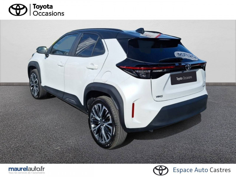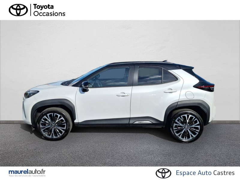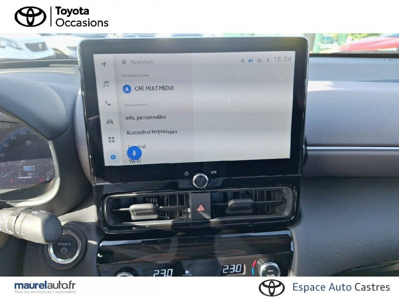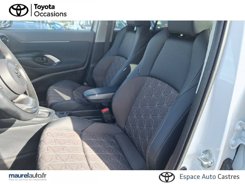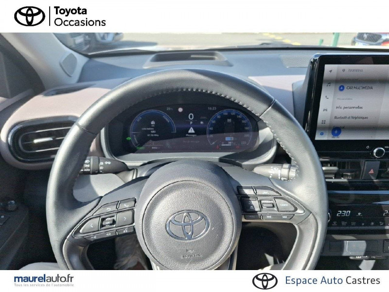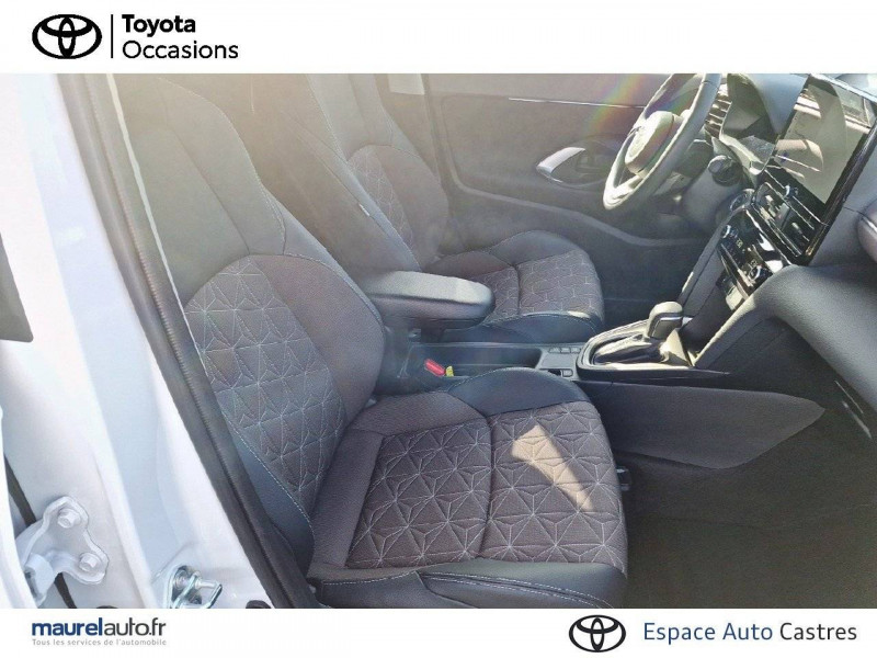 6 HP / Antenne de toit type requin / Attaches de coffre / Carrosserie bi-ton / Ciel de toit gris / Clignotants AR LED séquentiels / Connectivité smartphone Apple CarPlay et Android Auto sans fil / Double plancher du coffre modulable / Eclairage d'ambiance intérieur / Ecran TFT 12.3" / Ecrous antivol / Feux Full LED (AV/AR) / Jantes alliage 18" bi-ton anthracite (10 doubles-branches) / Lampe de plafonnier AR / Poches aumonières au dos des sièges AV / Prise 12 V dans le coffre / Purificateur d'air ionique Nanoe / Rails de toit noir / Réglage lombaire électrique pour le siège conducteur / Rétroviseur intérieur électrochromatique / Sellerie taupe et revêtement Premium / Services connectés de contrôle à distance MyToyota (inclus 4 ans) / Services connectés standards MyToyota (inclus 10 ans) / Seuils de portes en aluminium / Sièges AR rabattables 40:20:40 / Système d'appel d'urgence automatique "E-Call" / Système d'ouverture/fermeture et démarrage sans clé "Smart Entry & Start" / Système multimédia Toyota Smart Connect avec écran tactile 10,5" haute définition, Bluetooth, Radio FM et DAB (digitale), système de connectivité smartphone Apple CarPlay et Android Auto (sans fil), Services intelligents avec Navigation connectée avec infotrafic en temps réel, mises à jour cartographiques, assistant vocal "Hey Toyota" et recherche de points d'intérêts (inclus 4 ans) / Toyota T-MATE / Systemes d'aide à la conduite et au stationnement Avertisseur de circulation AR, Avertisseur d'angles morts, Radars de stationnement AV/AR, Sortie sécurisée des occupants / Toyota T-MATE / Toyota Safety Sense 3 Système de sécurité précollision avec détection des véhicules, piétons et cyclistes, actif également dans les intersections. Alerte de franchissement de ligne avec aide au maintien dans la file, assistant de trajectoire et détecteur de fatigue, Lecture des panneaux de signalisation avec limiteur de vitesse, Gestion automatique des feux de route, Régulateur de vitesse adaptatif intelligent, Système d'arrêt d'urgence autonome , Système d'assistance à la conduite proactive