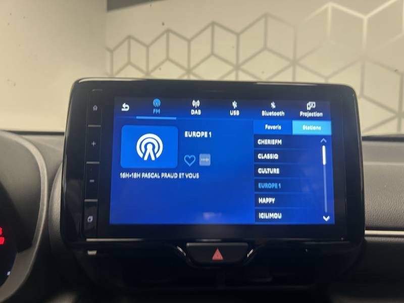 6 HP / Antenne de toit type requin / Carrosserie monoton / Ciel de toit gris / Connectivité smartphone Apple CarPlay et Android Auto sans fil / Double plancher du coffre / Ecran TFT 7" / Enjoliveurs 16" / Feux AV halogènes / Lampe de plafonnier AR / Sellerie tissu gris foncé / Services connectés standards MyToyota (inclus 10 ans) / Système audio Toyota Touch 3 écran tactile 9", radio digitale (DAB), Bluetooth / Système d'appel d'urgence automatique "E-Call" / Système d'ouverture/fermeture et démarrage sans clé "Smart Entry & Start" / Toyota T-MATE / Toyota Safety Sense 3 Système de sécurité précollision avec détection des véhicules, piétons et cyclistes, actif également dans les intersections. Alerte de franchissement de ligne avec aide au maintien dans la file, assistant de trajectoire et détecteur de fatigue, Lecture des panneaux de signalisation avec limiteur de vitesse, Gestion automatique des feux de route, Régulateur de vitesse adaptatif intelligent, Système d'arrêt d'urgence autonome , Système d'assistance à la conduite proactive