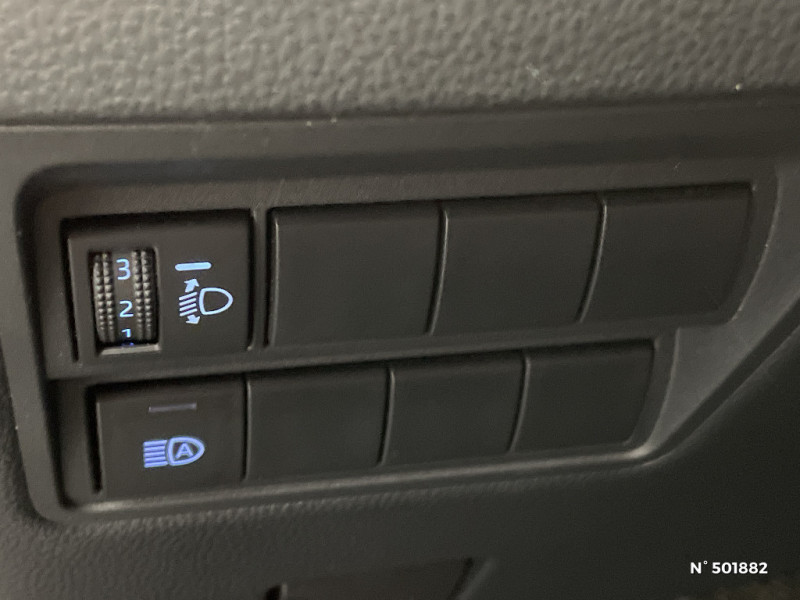 Système d'appel d'urgence automatique "E-Call" / Système d'ouverture/fermeture et démarrage sans clé "Smart Entry & Start" / Système multimédia Toyota Smart Connect : écran tactile 9", navigation connectée et contrôle à distance via l'application MyT (verrouiller/déverrouiller, climatisation et retrouver ma voiture avec allumage des feux clignotants) / Système multimédia Toyota Smart Connect : écran tactile 9", navigation connectée et contrôle à distance via l'application MyT (verrouiller/déverrouiller, relancer la climatisation et retrouver ma voiture avec allumage des feux clignotants) et 4 ans de mises à jour cartographiques et de services connectés inclus / Toyota Safety Sense / Toyota Safety Sense Système de sécurité précollision avec détection des véhicules, piétons et cyclistes, actif également dans les intersections. Alerte de franchissement de ligne avec aide au maintien dans la file, assistant de trajectoire et détecteur de fatigue, Lecture des panneaux de signalisation avec limiteur de vitesse, Gestion automatique des feux de route, Régulateur de vitesse adaptatif intelligent / 6 HP / Antenne de toit type requin / Clignotants LED séquentiels / Double plancher du coffre / Ecran couleur tactile multifonction 9" / Ecran TFT 4,2" / Feux AV/AR avec signature lumineuse Full LED / Feux de route adaptatifs / Feux de route automatiques / Feux Full LED (AV/AR) / Jantes alliage 17" (5 doubles-branches) / Peinture Blanc Pur / Rails de toit / Rails de toit noir / Rétroviseur intérieur électrochromatique / Sellerie tissu gris
