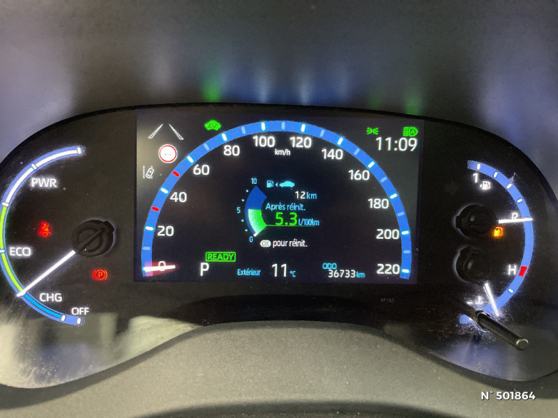 Antenne de toit type requin / Toyota Safety Sense Système de sécurité précollision avec détection des véhicules, piétons et cyclistes, actif également dans les intersections. Alerte de franchissement de ligne avec aide au maintien dans la file, assistant de trajectoire et détecteur de fatigue, Lecture des panneaux de signalisation avec limiteur de vitesse, Gestion automatique des feux de route, Régulateur de vitesse adaptatif intelligent / Système multimédia Toyota Smart Connect : écran tactile 9", navigation connectée et contrôle à distance via l'application MyT (verrouiller/déverrouiller, relancer la climatisation et retrouver ma voiture avec allumage des feux clignotants) et 4 ans de mises à jour cartographiques et de services connectés inclus / Rétroviseur intérieur électrochromatique / Réglage lombaire du siège conducteur / Jantes alliage 18'' métal (10 doubles-branches) / Feux Full LED (AV/AR) / Ecran couleur tactile multifonction 9" / Carrosserie bi-ton / 6 HP