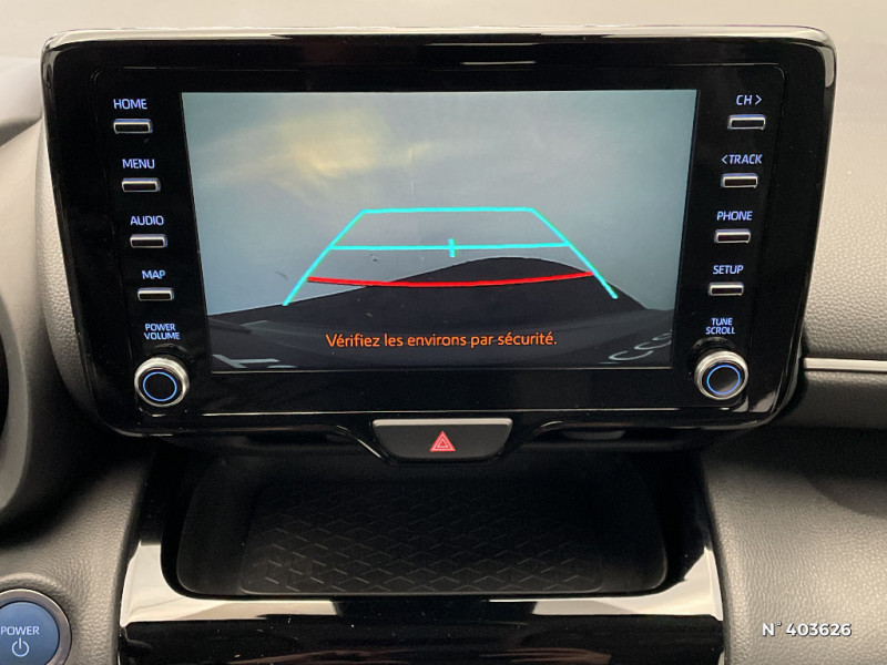 Connectivité smartphone Apple CarPlay et Android Auto / Double plancher du coffre / Ecran couleur tactile multifonction 8" / Ecran TFT 4,2" / Feux AV halogènes / Peinture Blanc Pur / Programme "Beyond Zero Academy" / Sellerie tissu gris / Stage Hybride Académie / Système d'appel d'urgence automatique "E-Call" / Système d'ouverture/fermeture et démarrage sans clé "Smart Entry & Start" / Toyota Safety Sense / Toyota Safety Sense Système de sécurité précollision avec détection des véhicules, piétons et cyclistes, actif également dans les intersections. Alerte de franchissement de ligne avec aide au maintien dans la file, assistant de trajectoire et détecteur de fatigue, Lecture des panneaux de signalisation avec limiteur de vitesse, Gestion automatique des feux de route, Régulateur de vitesse adaptatif intelligent / Toyota Touch & Go : système de navigation 3D à écran couleur tactile avec reconnaissance vocale et 3 ans de mises à jour cartographiques et de services connectés inclus / 4 HP / Antenne de toit type requin