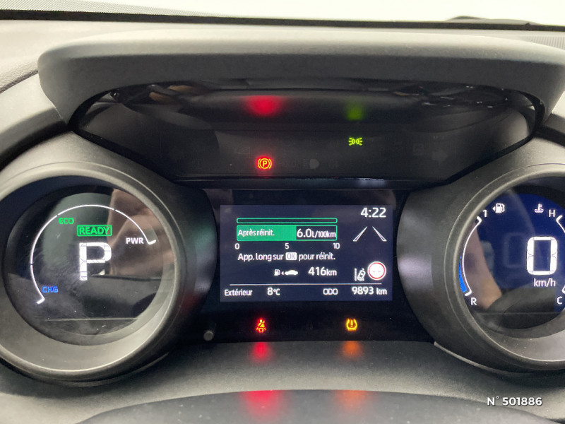 Antenne de toit type requin / Toyota Safety Sense Système de sécurité précollision avec détection des véhicules, piétons et cyclistes, actif également dans les intersections. Alerte de franchissement de ligne avec aide au maintien dans la file, assistant de trajectoire et détecteur de fatigue, Lecture des panneaux de signalisation avec limiteur de vitesse, Gestion automatique des feux de route, Régulateur de vitesse adaptatif intelligent / Feux de route automatiques / Jantes alliage 17" (5 doubles-branches) / Rétroviseur intérieur électrochromatique / Sellerie tissu gris / Système d'ouverture/fermeture et démarrage sans clé "Smart Entry & Start" / Système multimédia Toyota Smart Connect : écran tactile 9", navigation connectée et contrôle à distance via l'application MyT (verrouiller/déverrouiller, relancer la climatisation et retrouver ma voiture avec allumage des feux clignotants) et 4 ans de mises à jour cartographiques et de services connectés inclus / 6 HP