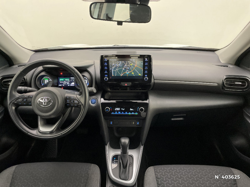 Antenne de toit type requin / 6 HP / Carrosserie monoton / Ciel de toit noir / Clignotants AR LED séquentiels / Connectivité smartphone Apple CarPlay et Android Auto sans fil / Double plancher du coffre modulable / Ecran TFT 7" / Ecrous antivol / Feux Full LED (AV/AR) / Jantes alliage 17" (5 doubles-branches) / Lampe de plafonnier AR / Programme "Toyota Experience" / Rails de toit noir / Réglage lombaire électrique pour le siège conducteur / Sellerie tissu gris / Services connectés de contrôle à distance MyToyota (inclus 4 ans) / Services connectés standards MyToyota (inclus 10 ans) / Seuils de portes en aluminium / Sièges AR rabattables 40:20:40 / Système d'appel d'urgence automatique "E-Call" / Système d'ouverture/fermeture et démarrage sans clé "Smart Entry & Start" / Système multimédia Toyota Smart Connect avec écran tactile 10,5" haute définition, Bluetooth, Radio FM et DAB (digitale), système de connectivité smartphone Apple CarPlay et Android Auto (sans fil), Services intelligents avec Navigation connectée avec infotrafic en temps réel, mises à jour cartographiques, assistant vocal "Hey Toyota" et recherche de points d¿intérêts (inclus 4 ans) / Toyota T-MATE / Systemes d¿aide à la conduite et au stationnement Avertisseur de circulation AR, Avertisseur d¿angles morts, Radars de stationnement AV/AR, Sortie sécurisée des occupants / Toyota T-MATE / Toyota Safety Sense 3 Système de sécurité précollision avec détection des véhicules, piétons et cyclistes, actif également dans les intersections. Alerte de franchissement de ligne avec aide au maintien dans la file, assistant de trajectoire et détecteur de fatigue, Lecture des panneaux de signalisation avec limiteur de vitesse, Gestion automatique des feux de route, Régulateur de vitesse adaptatif intelligent, Système d'arrêt d'urgence autonome , Système d'assistance à la conduite proactive / Attaches de coffre