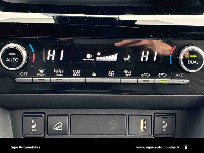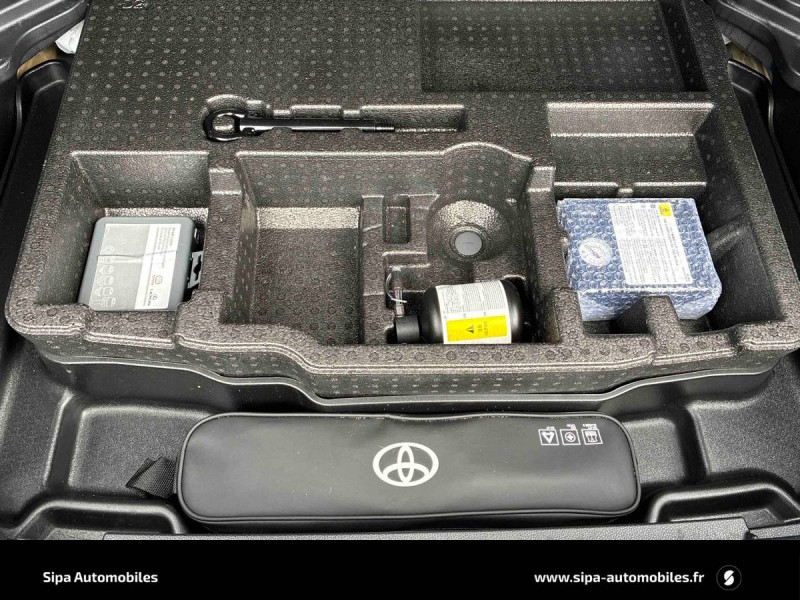 6 HP / Antenne de toit type requin / Attaches de coffre / Avertisseur de circulation AR (RCTA) / Boucliers AV/AR gris / Clignotants LED séquentiels / Eclairage d'ambiance intérieur / Ecran couleur tactile multifonction 9" / Ecran TFT 7" / Ecrous antivol / Feux Full LED (AV/AR) / Jantes alliage 18'' noires (10 doubles-branches) / Poches aumonières au dos des sièges AV / Purificateur d'air ionique Nanoe / Rails de toit noir / Réglage lombaire électrique pour le siège conducteur / Rétroviseur intérieur électrochromatique / Seuils de portes en aluminium / Sièges AR rabattables 40:20:40 / Système d'appel d'urgence automatique "E-Call" / Système d'ouverture/fermeture et démarrage sans clé "Smart Entry & Start" / Système multimédia Toyota Smart Connect : écran tactile 9", navigation connectée et contrôle à distance via l'application MyT (verrouiller/déverrouiller, relancer la climatisation et retrouver ma voiture avec allumage des feux clignotants) et 4 ans de mises à jour cartographiques et de services connectés inclus / Toyota Safety Sense