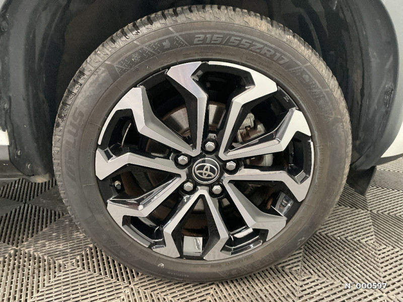 Feux Full LED (AV/AR) / Jantes alliage 17" (5 doubles-branches) / Peinture Blanc Pur / Rails de toit / Rails de toit noir / Rétroviseur intérieur électrochromatique / Sellerie tissu gris / Système d'appel d'urgence automatique "E-Call" / Système d'ouverture/fermeture et démarrage sans clé "Smart Entry & Start" / Système multimédia Toyota Smart Connect : écran tactile 9", navigation connectée et contrôle à distance via l'application MyT (verrouiller/déverrouiller, climatisation et retrouver ma voiture avec allumage des feux clignotants) / Système multimédia Toyota Smart Connect : écran tactile 9", navigation connectée et contrôle à distance via l'application MyT (verrouiller/déverrouiller, relancer la climatisation et retrouver ma voiture avec allumage des feux clignotants) et 4 ans de mises à jour cartographiques et de services connectés inclus / Toyota Safety Sense / Toyota Safety Sense Système de sécurité précollision avec détection des véhicules, piétons et cyclistes, actif également dans les intersections. Alerte de franchissement de ligne avec aide au maintien dans la file, assistant de trajectoire et détecteur de fatigue, Lecture des panneaux de signalisation avec limiteur de vitesse, Gestion automatique des feux de route, Régulateur de vitesse adaptatif intelligent / 6 HP / Ecran couleur tactile multifonction 9" / Antenne de toit type requin / Clignotants LED séquentiels / Double plancher du coffre / Ecran TFT 4,2" / Feux AV/AR avec signature lumineuse Full LED / Feux de route adaptatifs / Feux de route automatiques